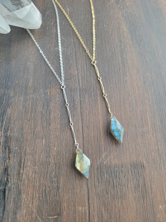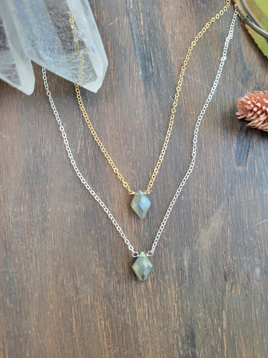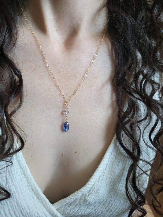 Dainty Kyanite and Herkimer Diamond Drop Necklace