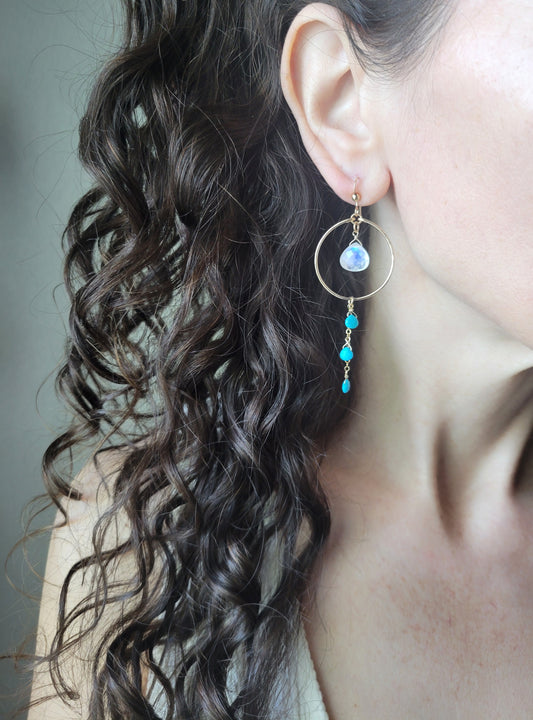Rainbow Moonstone and Turquoise Dangle Hoop EarringsRegular price From $72.00 USDRegular priceUnit price per-