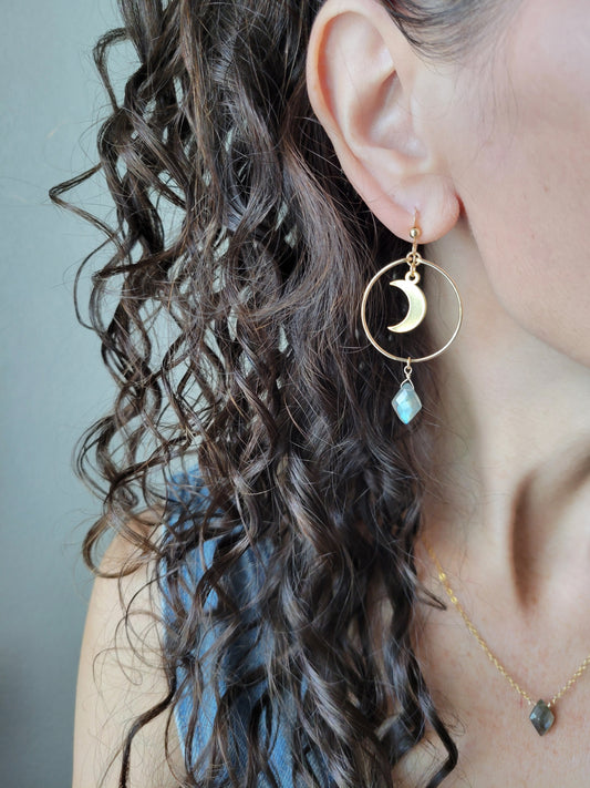 Crescent Moon Labradorite Hoop EarringsRegular price $58.00 USDRegular priceUnit price per-