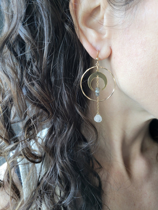 Labradorite Moonstone Crescent Hoop EarringsRegular price $58.00 USDRegular priceUnit price per-