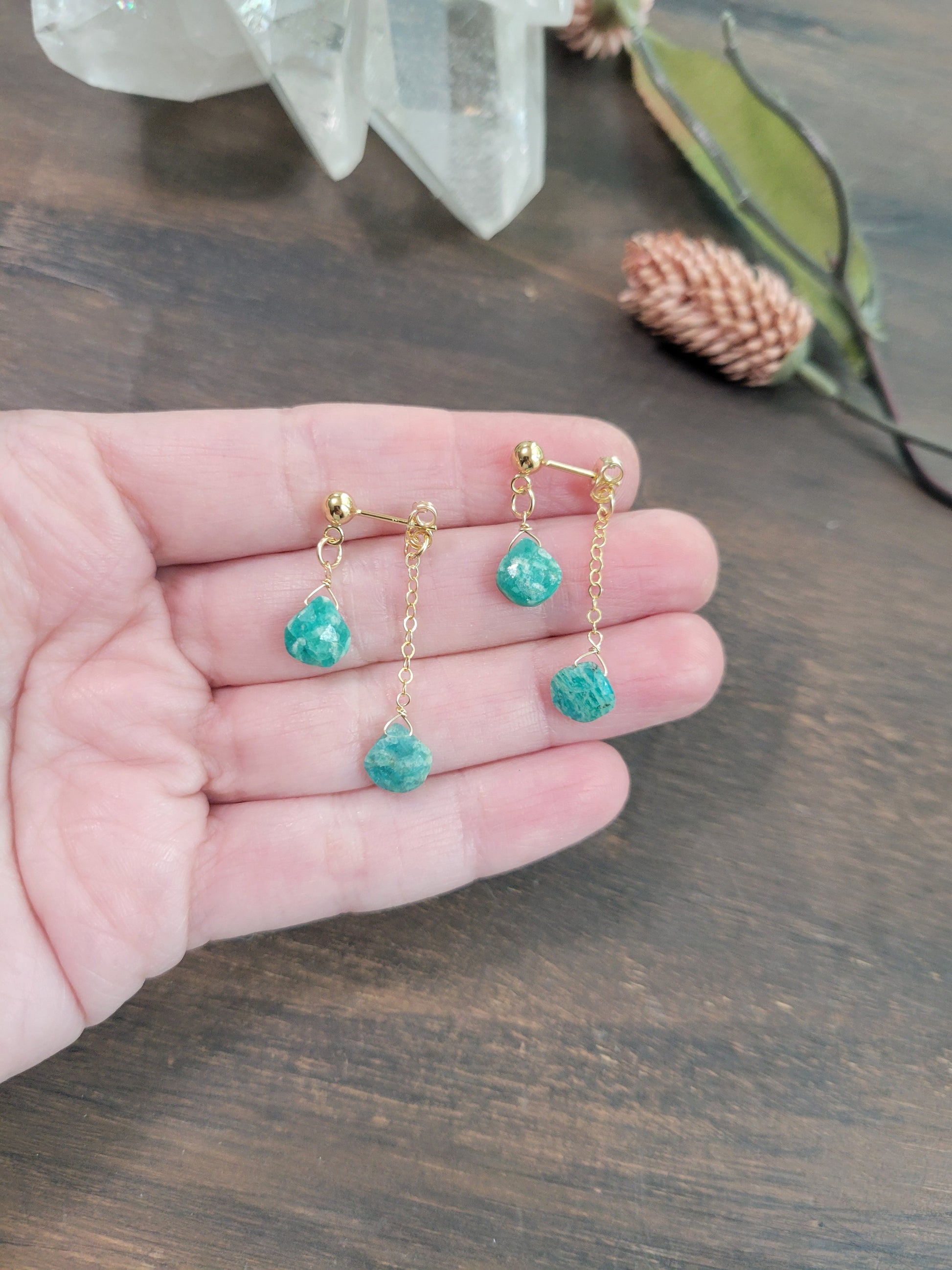 Amazonite Dangle Stud Earrings