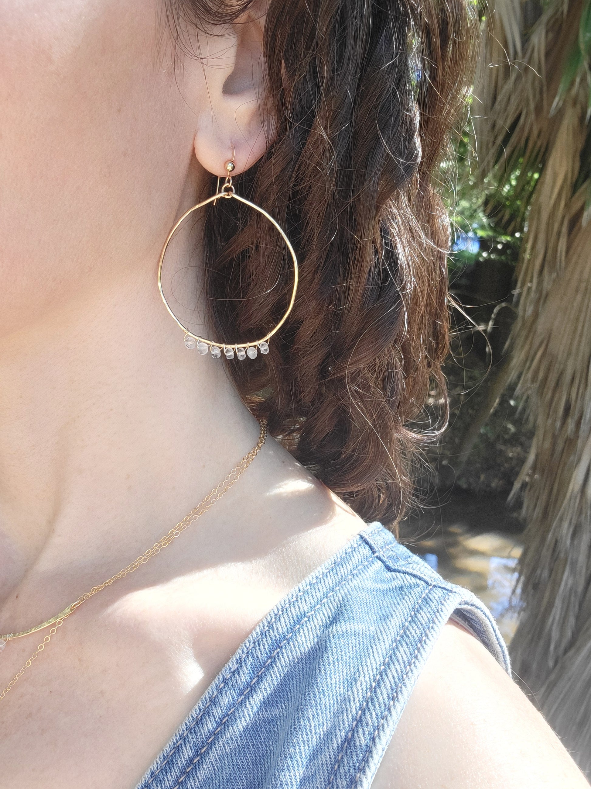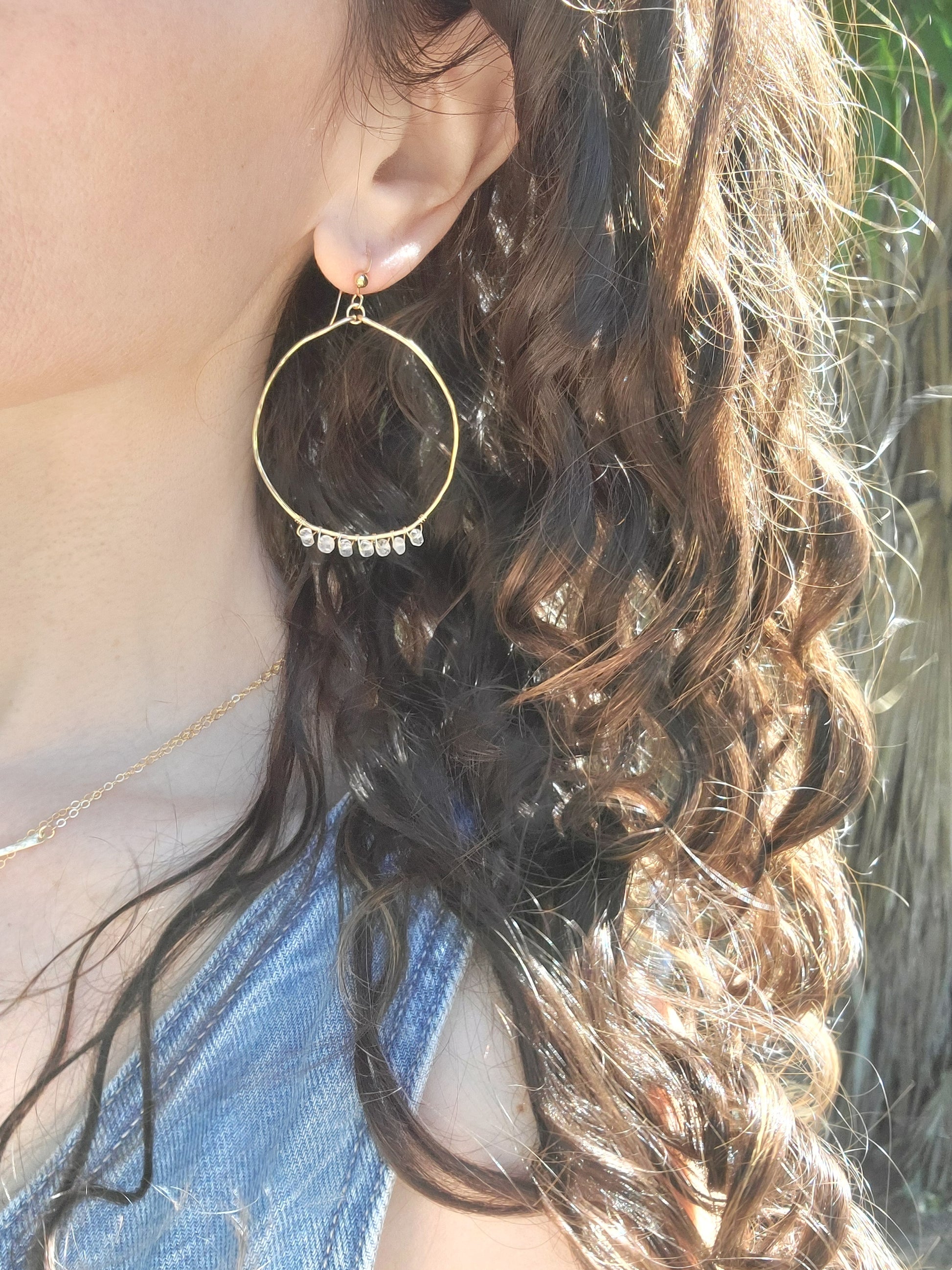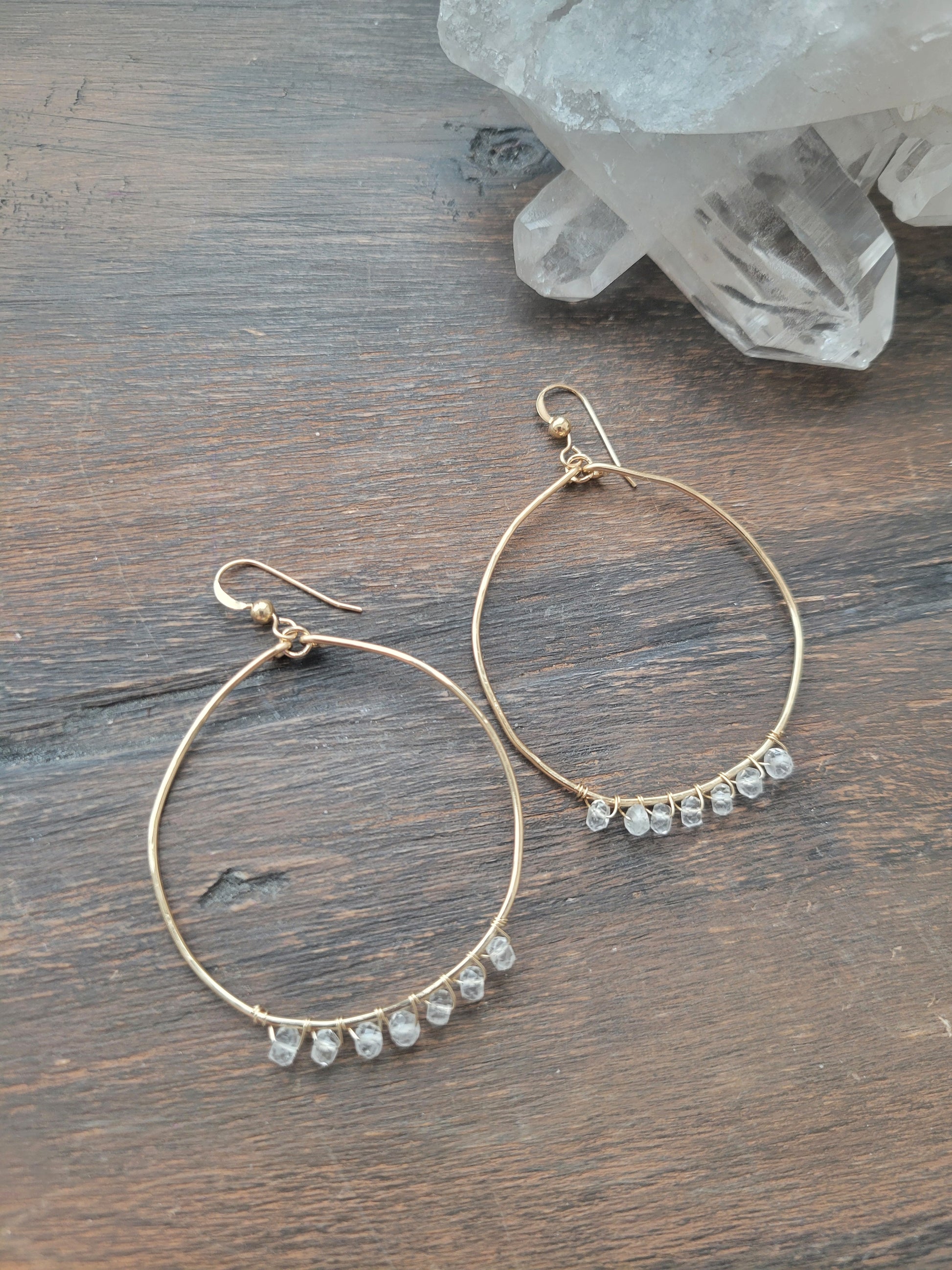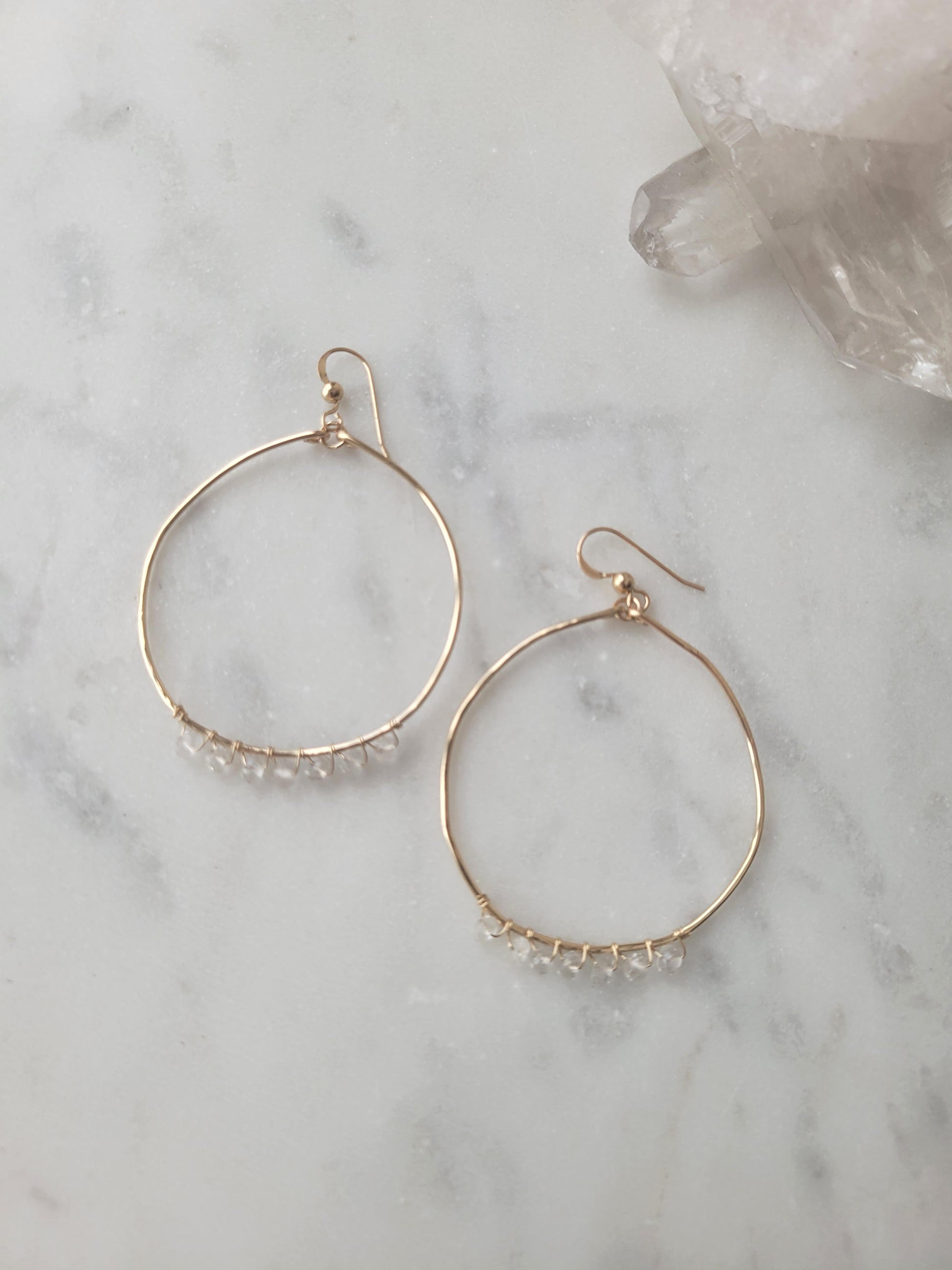 The Crystal Waters Hoop Earrings feature the beautiful Crystal Quartz gemstones.