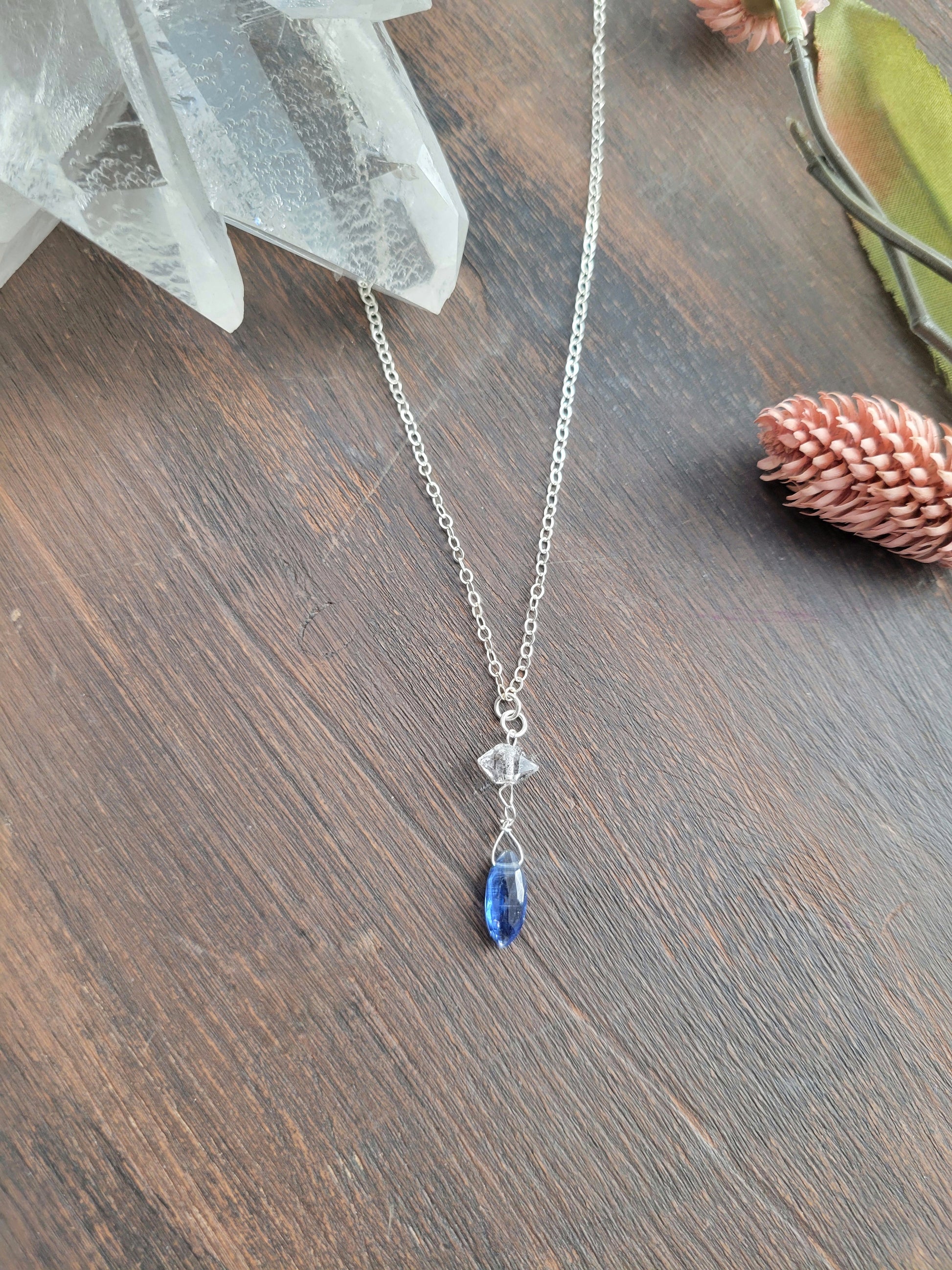 Dainty Kyanite and Herkimer Diamond Drop Necklace