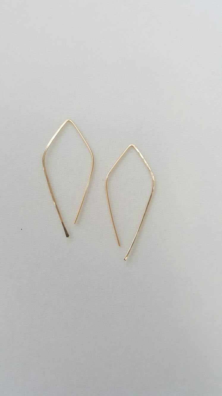 Handmade from 14 K Gold Filled or Sterling Silver Wire. The longer side is hammered to add some fun and uniqueness to it. The length is approx. 2 in. In length.