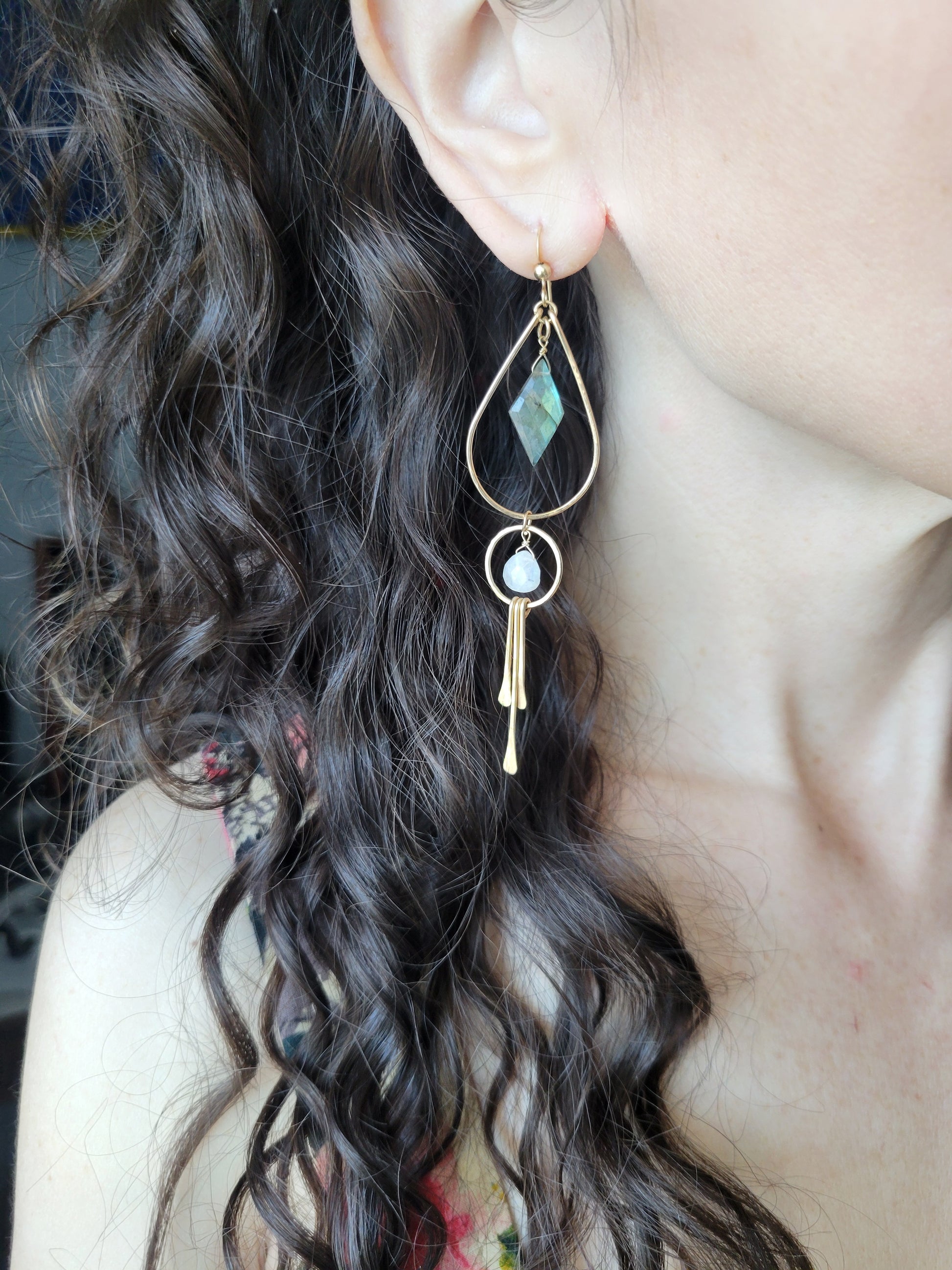 Beautiful Labradorite and Moonstone Fringe Earrings. These beauties are magical and fun! A perfect statement earring!