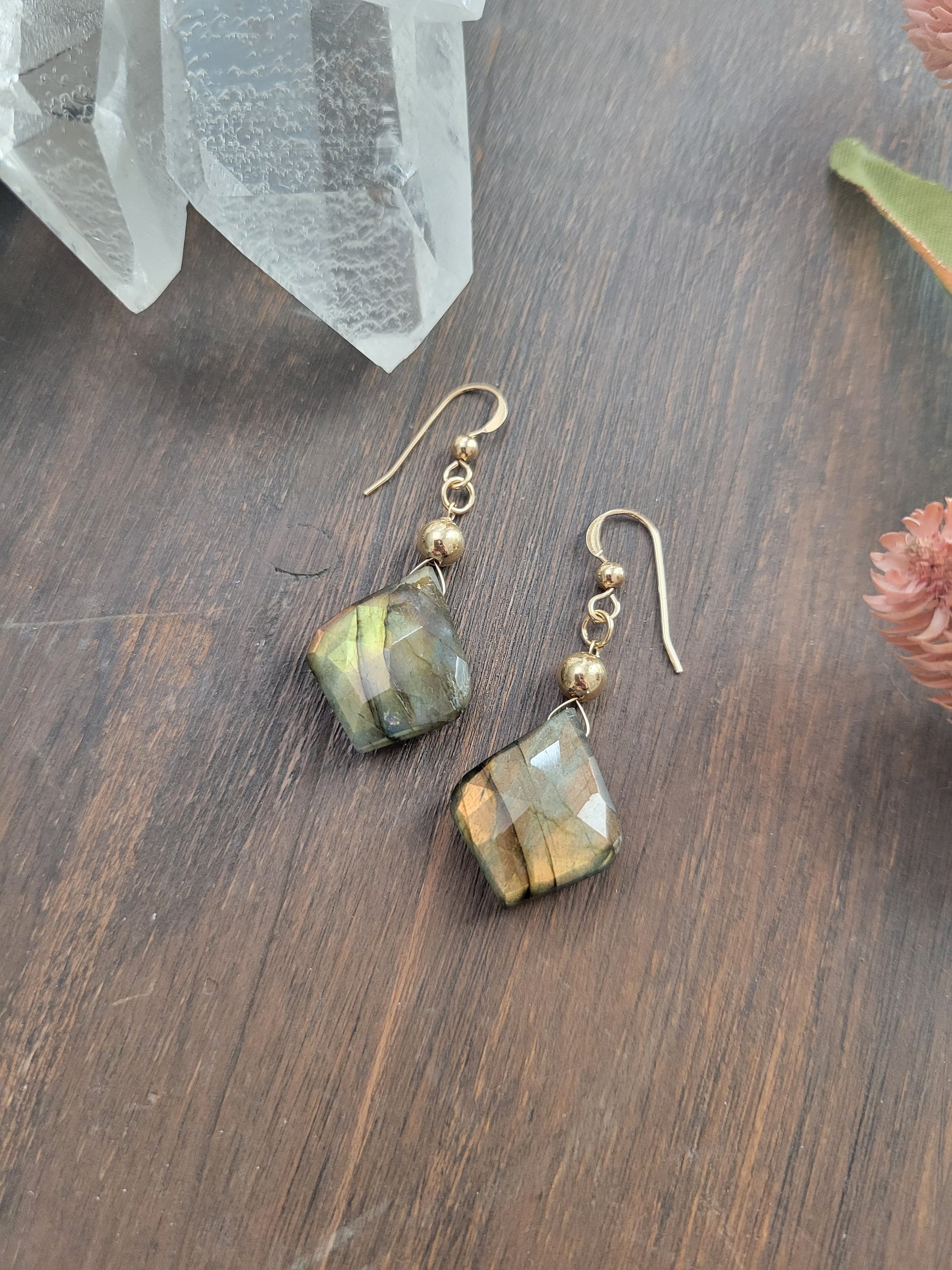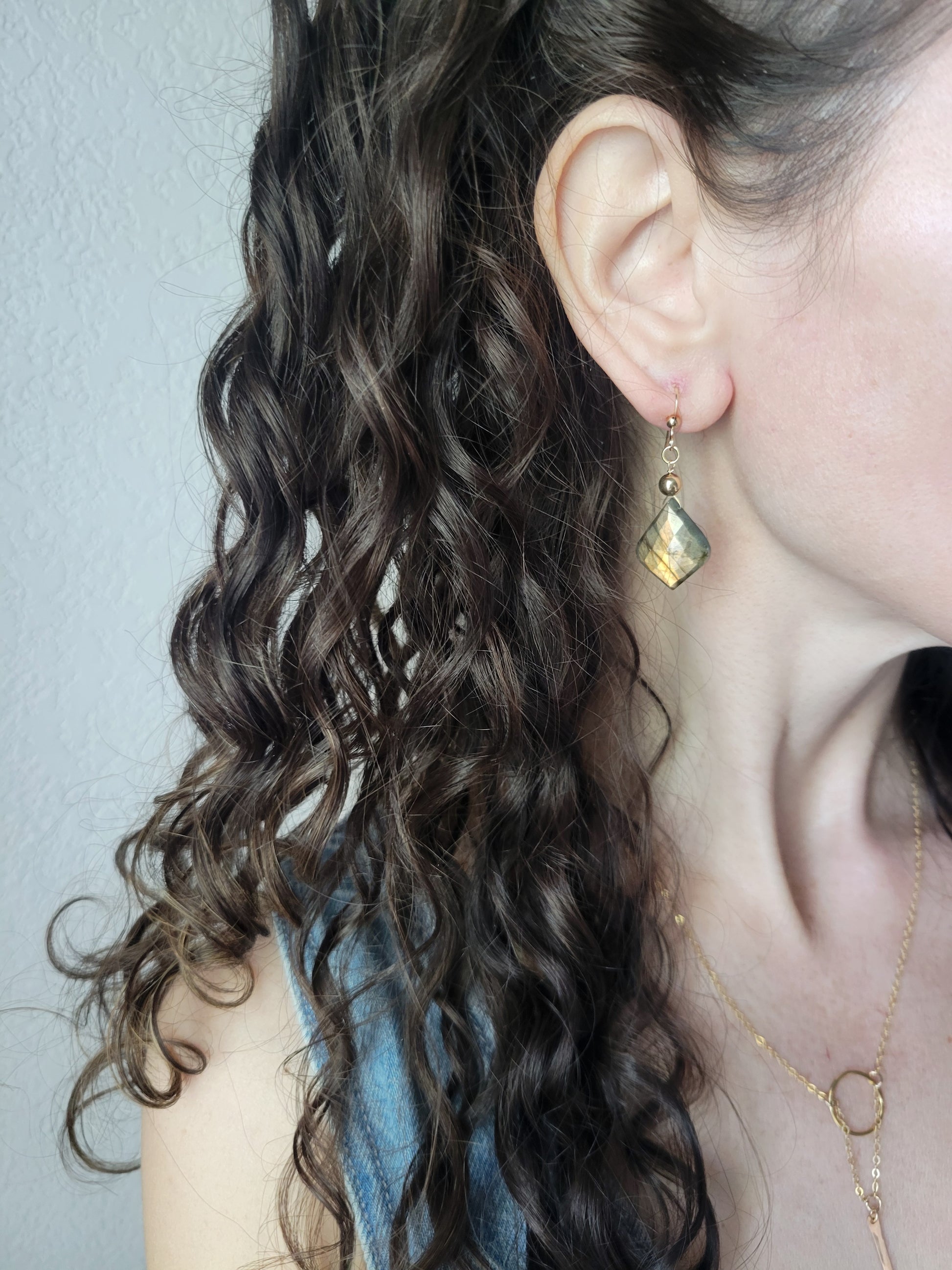 At the top of each Labradorite gem is either a Sterling Silver or 14K Gold Filled ball bead.