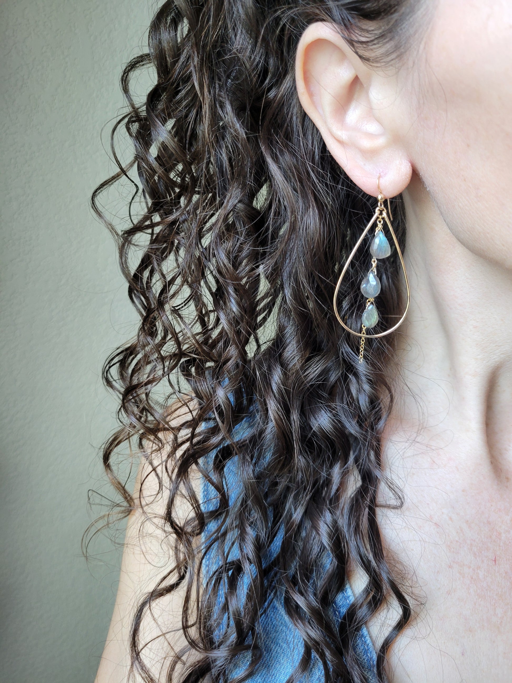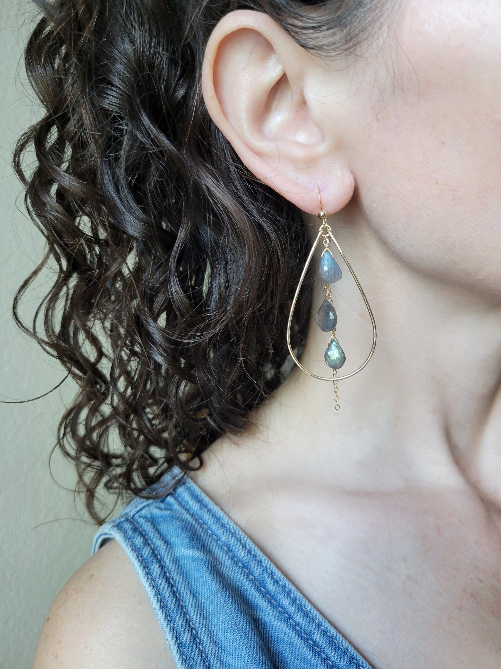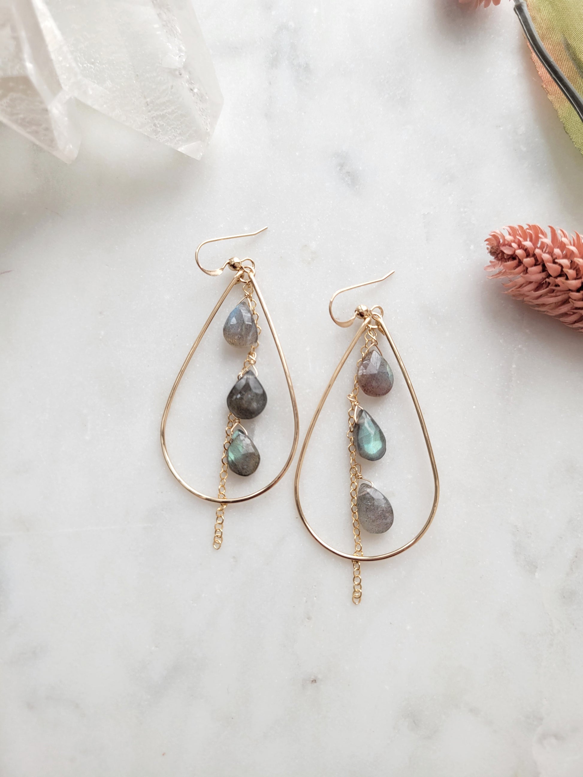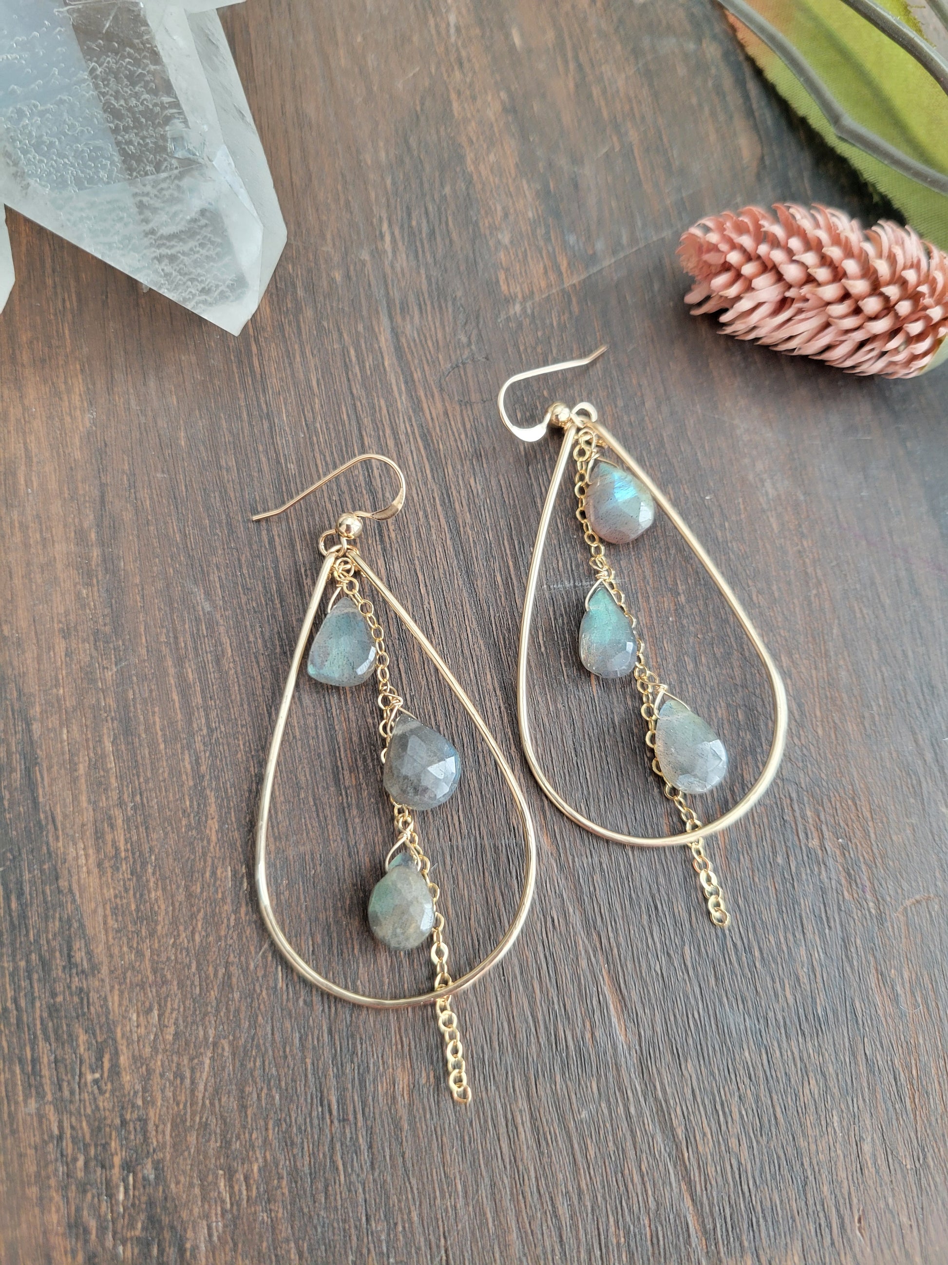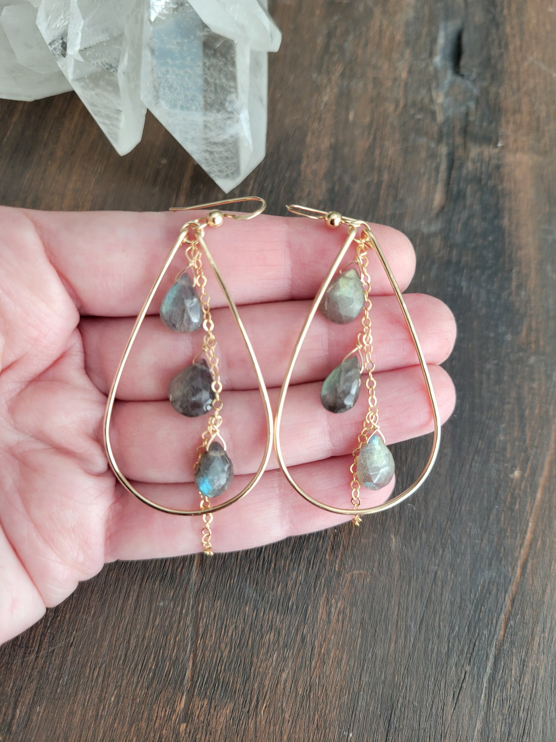 Beautiful and fun, Labradorite Teardrop Dangle Hoop Earrings.