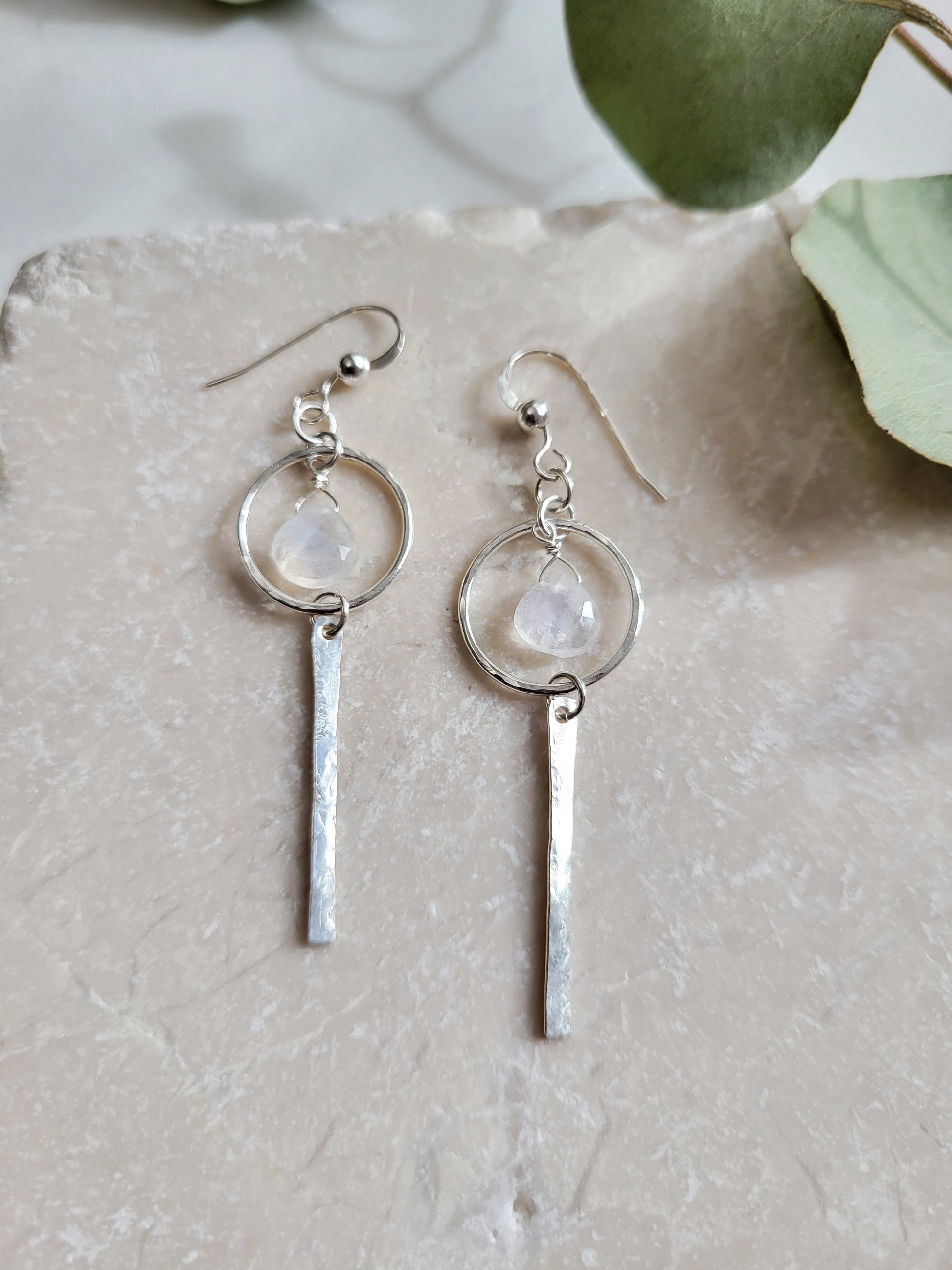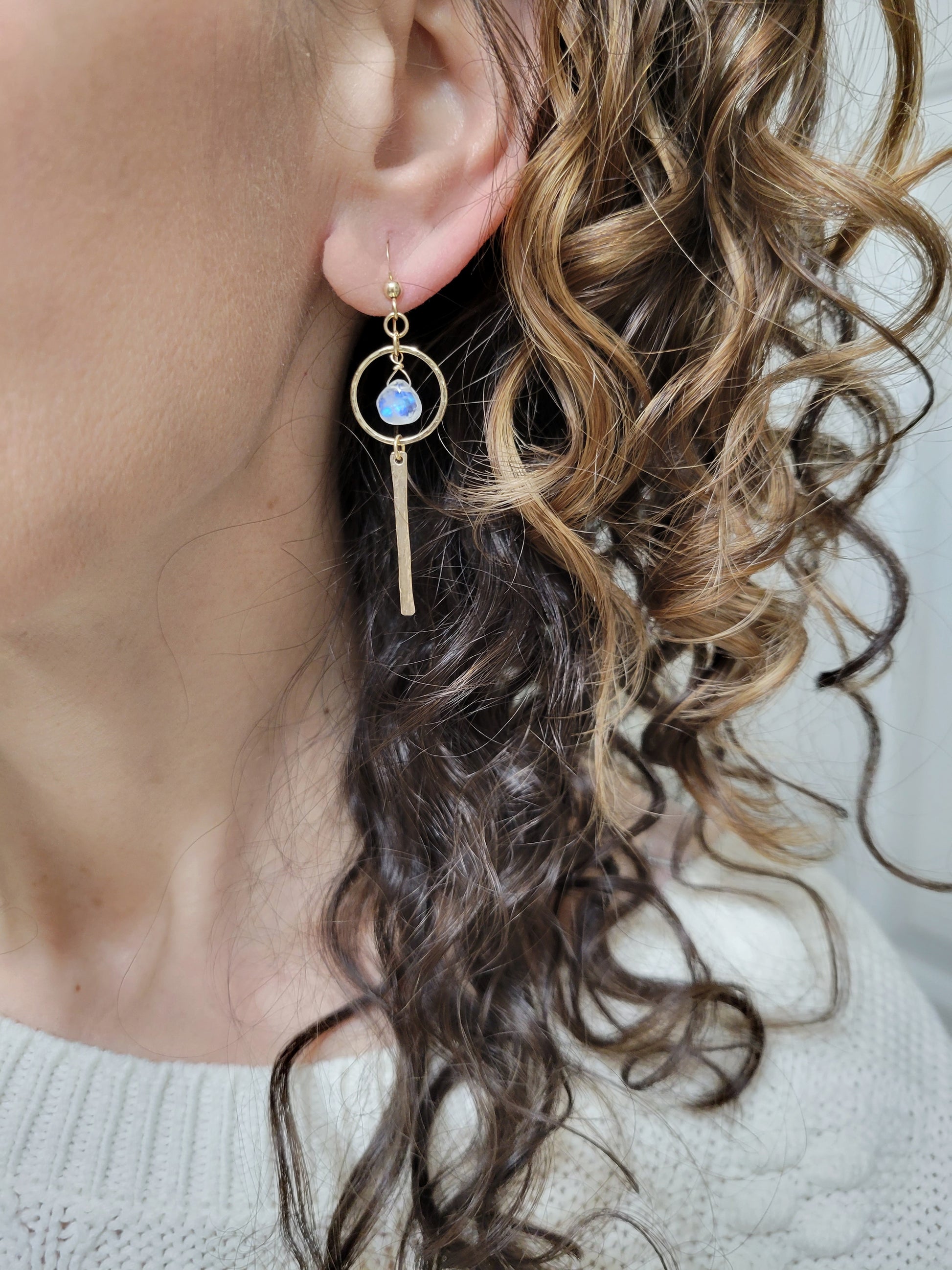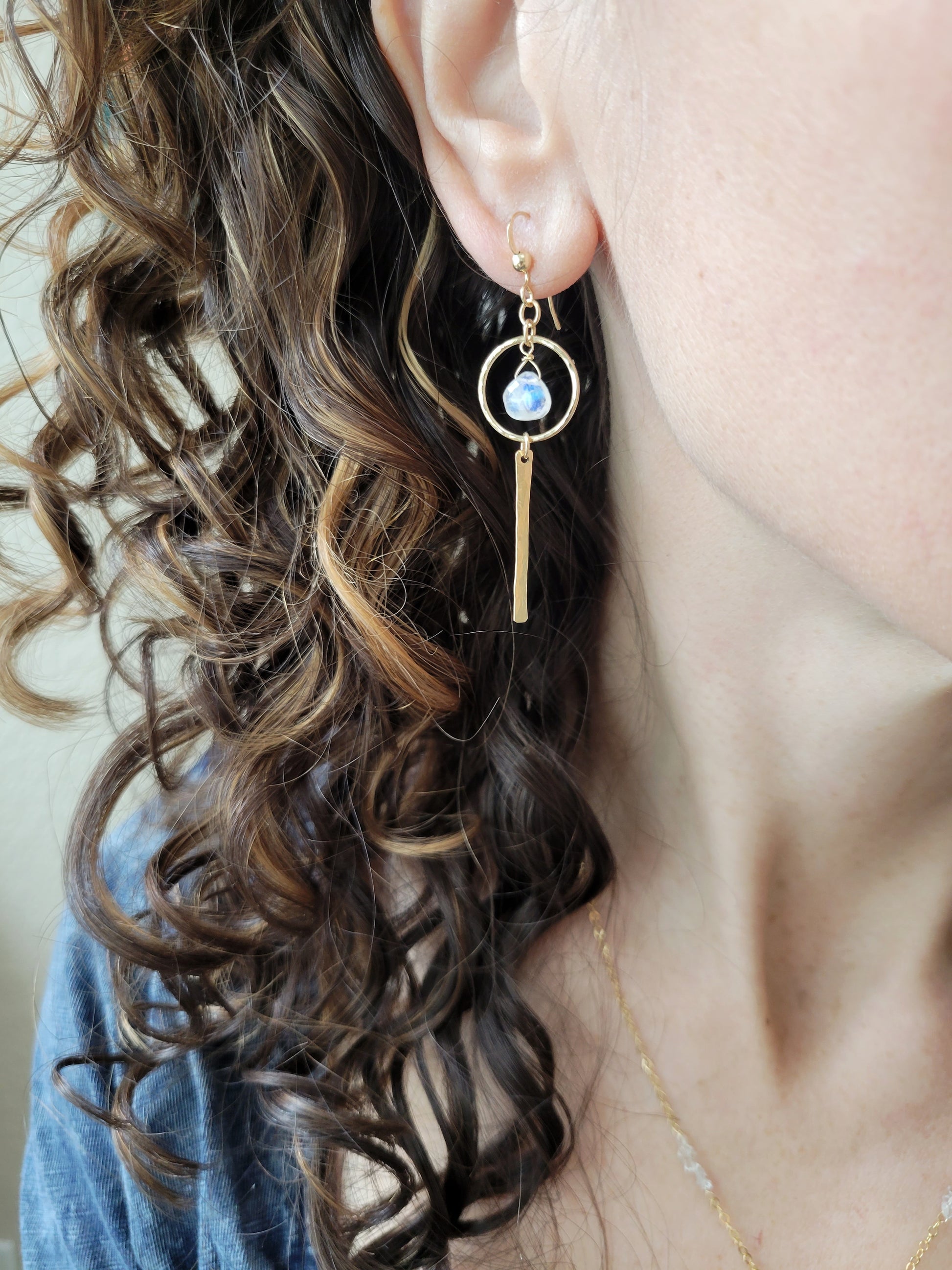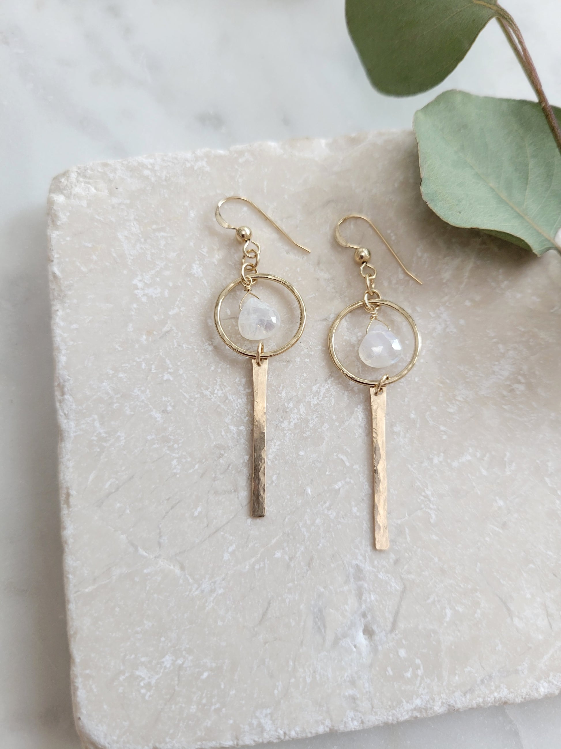 These beauties feature the beautiful Moonstone Gemstone. They are perfect earrings for any outfit and are super light!