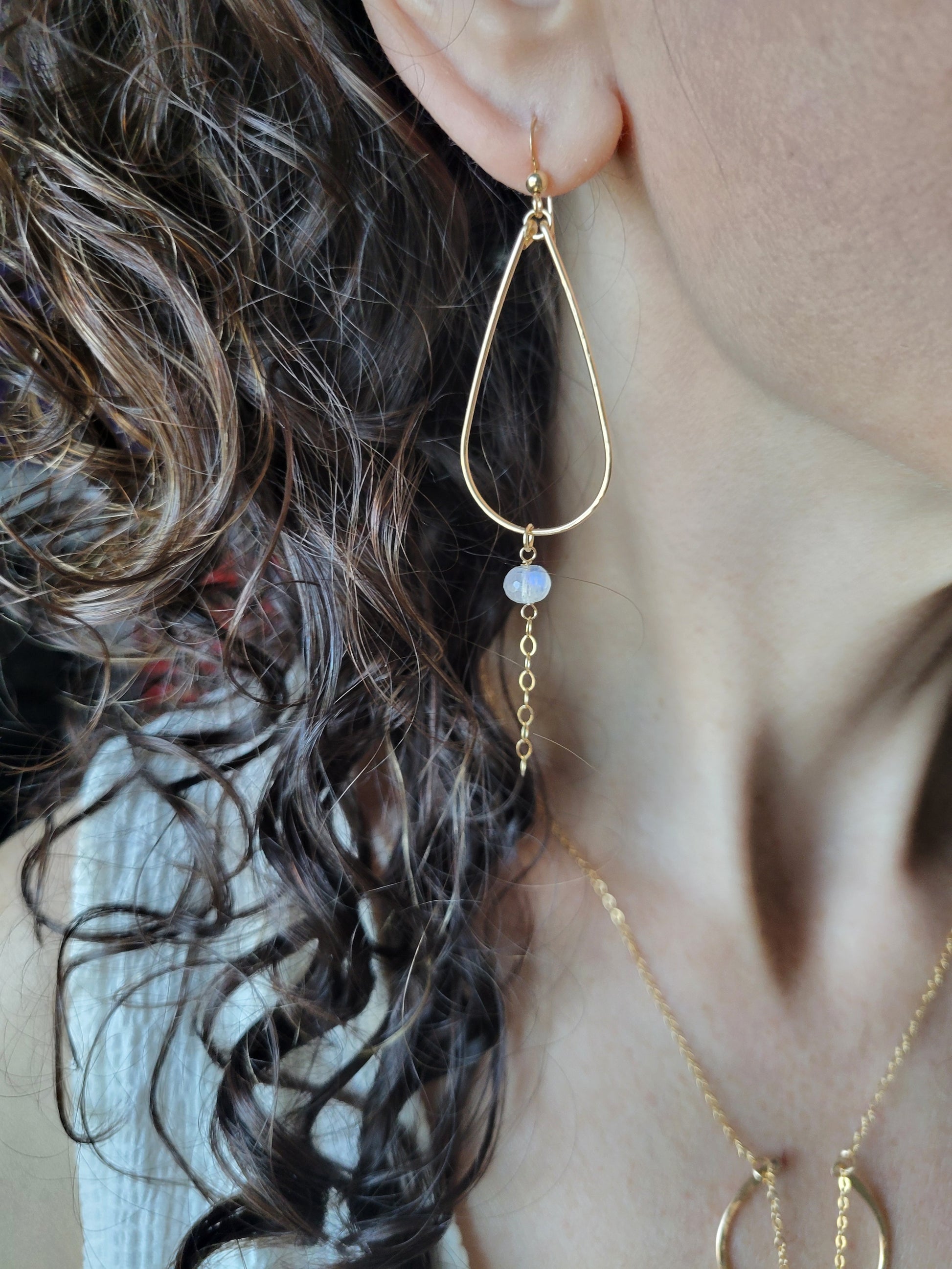 Moonstone Drop Earrings in your choice of Sterling Silver or 14K Gold Filled. These beauties are fun and classy! They are super lightweight and go with anything!