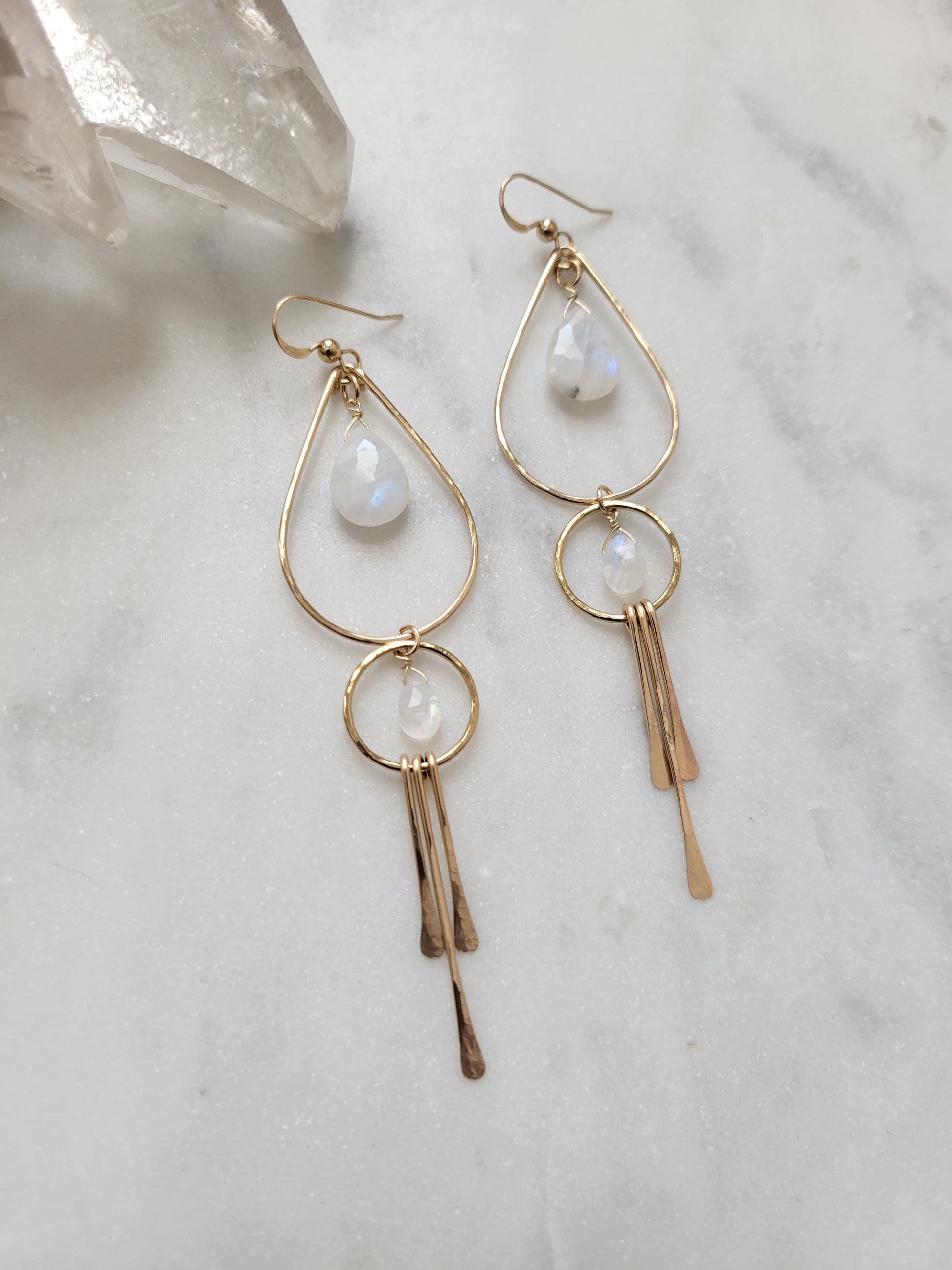 Gorgeous and fun Moonstone Goddess Earrings. Moonstone is said to be a stone of new beginnings. A stone of strength and inner growth. It is also said to be linked to to the divine feminine. It is believed to connect with the moon's energy, bringing balance, calm, abundance, and intuition to the person wearing it. I bet you will also feel your inner goddess when wearing them!