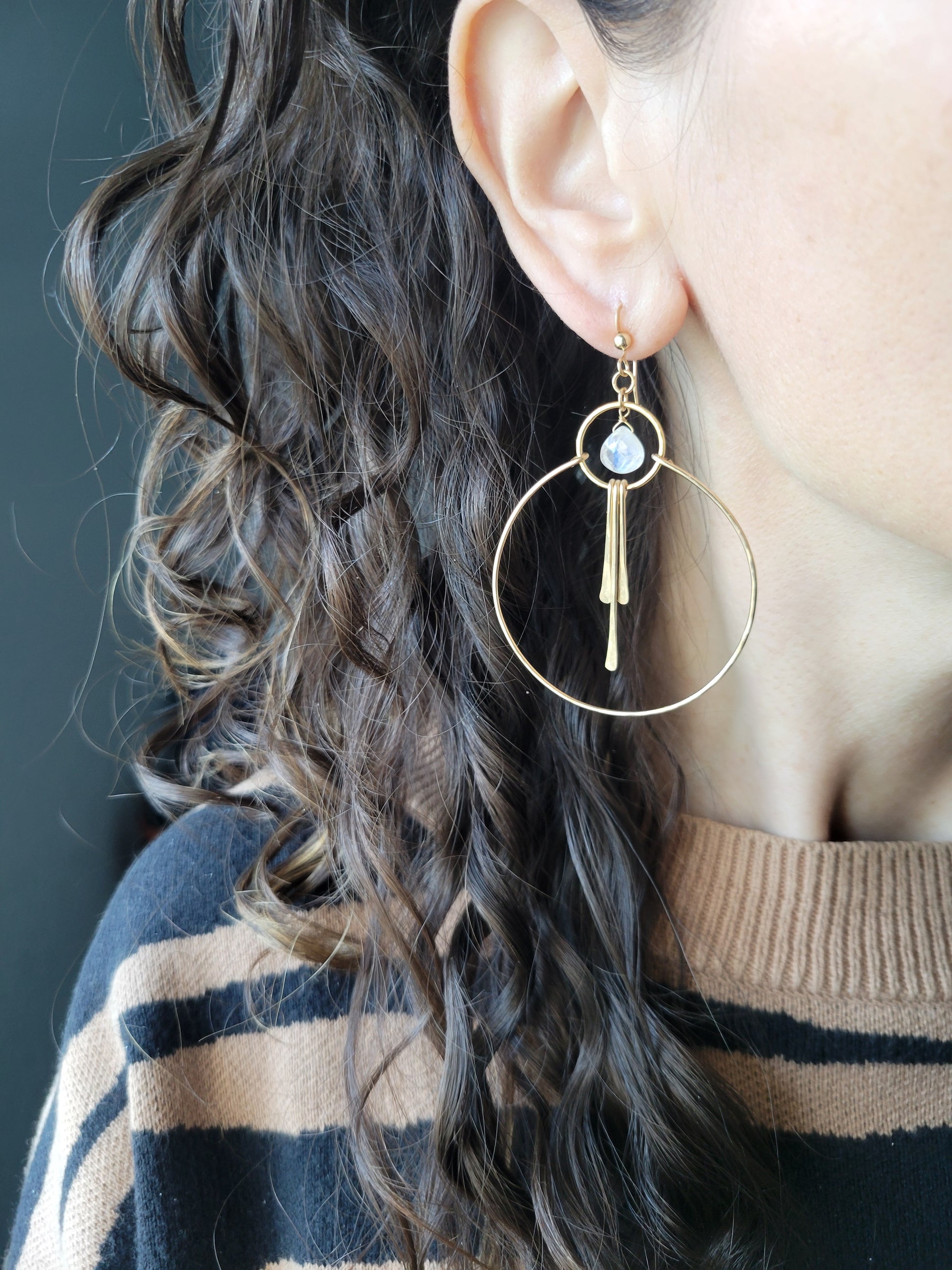 Moonstone Hoop Earrings with Fringe