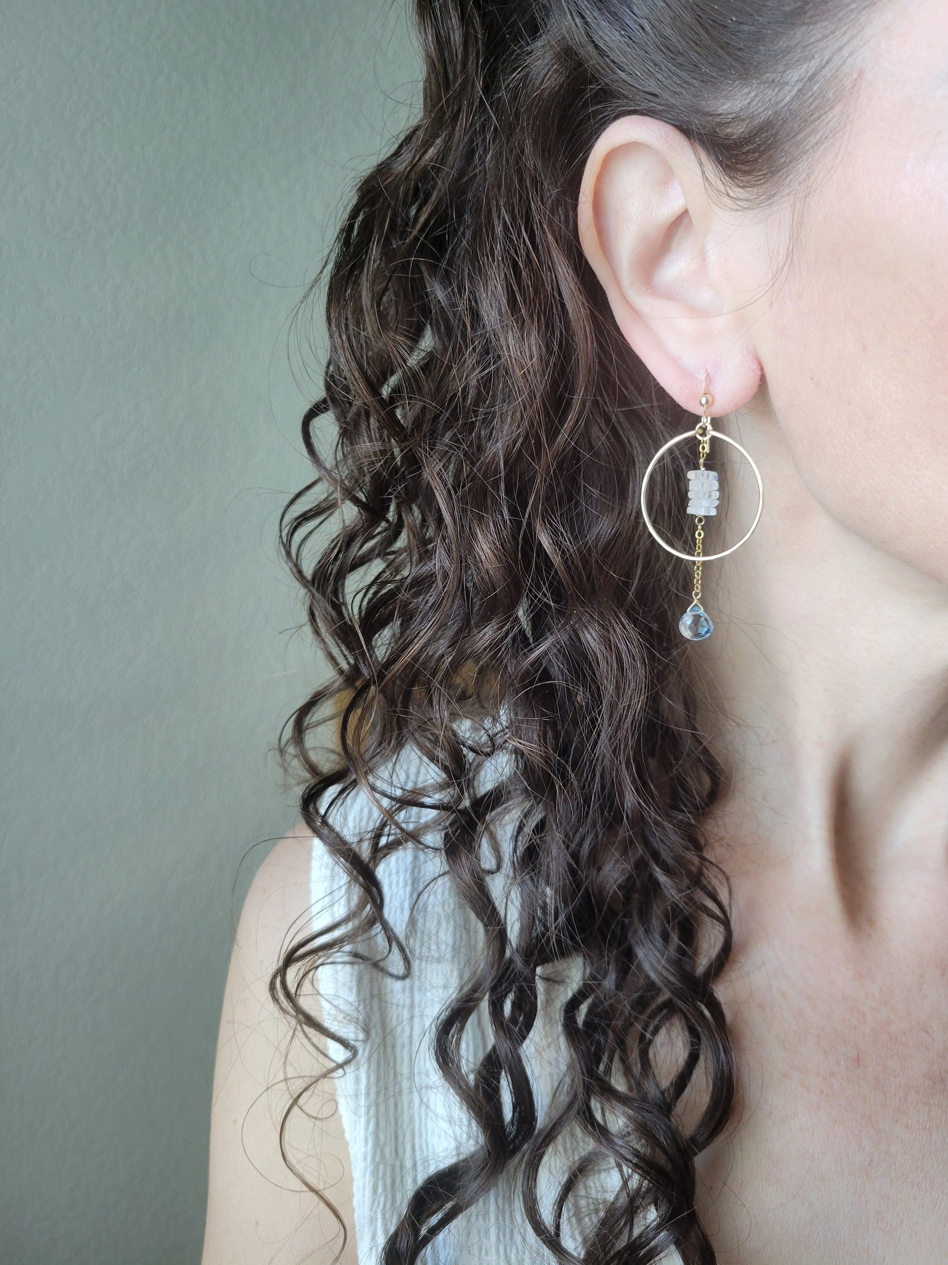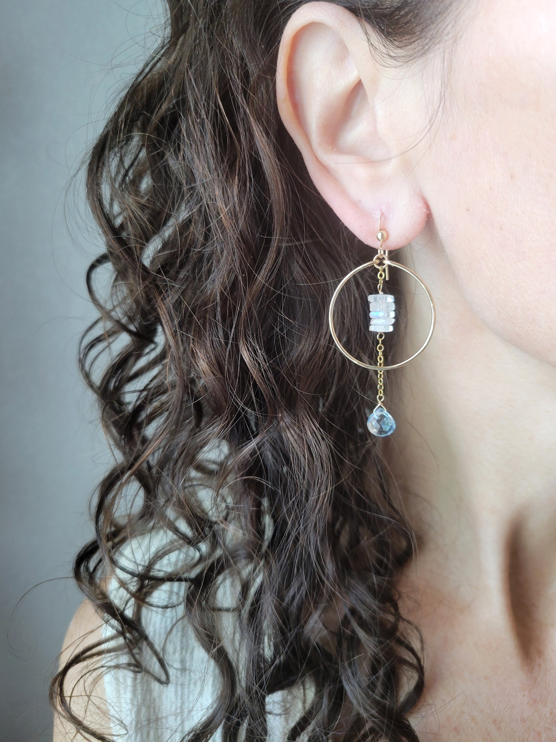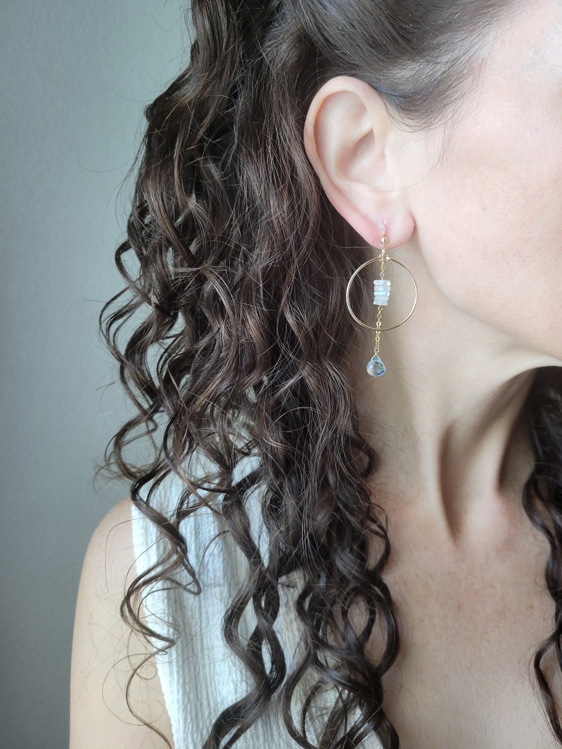 Sky Blue Topaz Hoop Dangle Earrings with Moonstone in your choice of Sterling Silver or 14K Gold Filled. Lightweight with delicate movement. You can easily dress these beauties up or down.