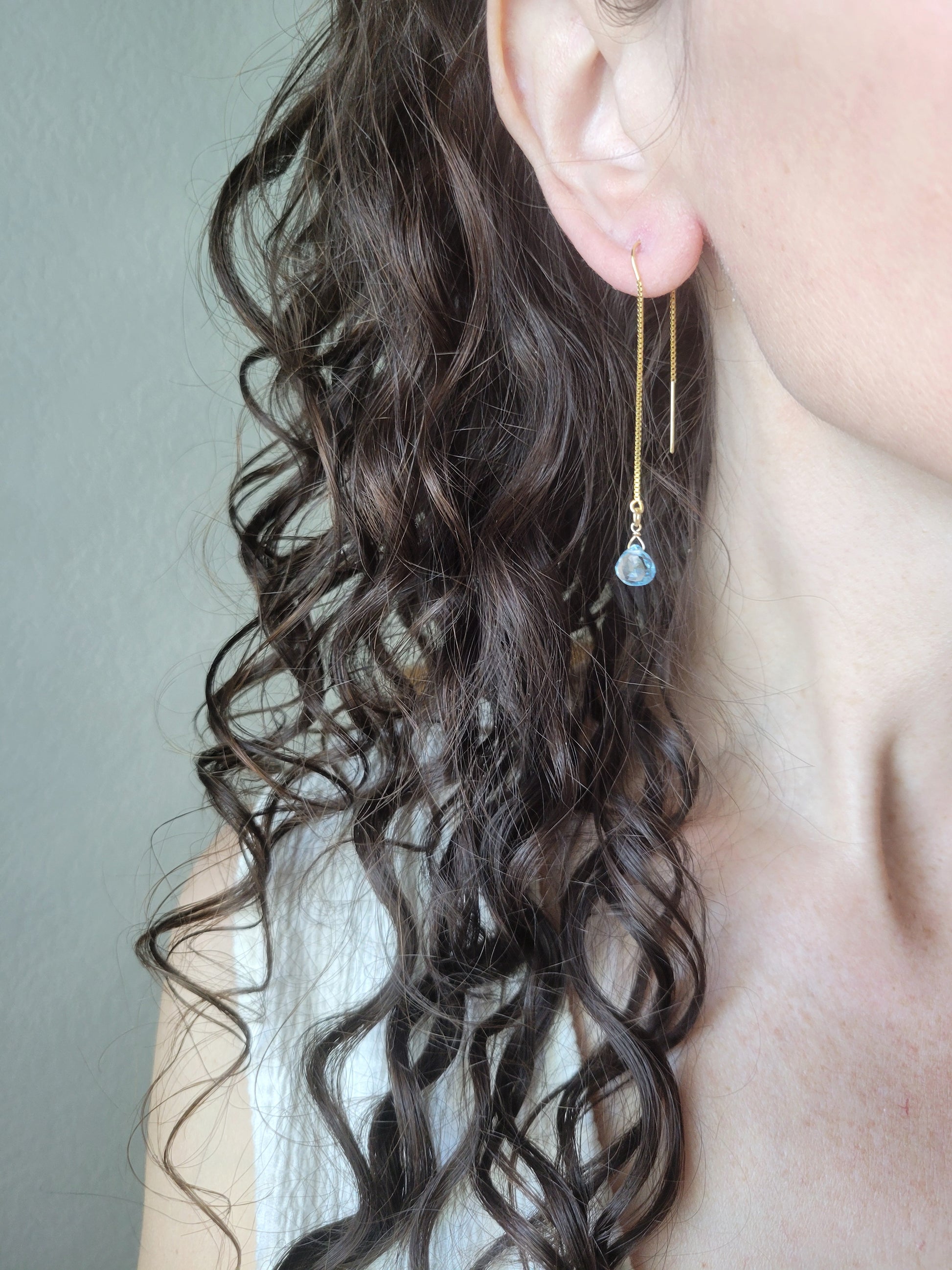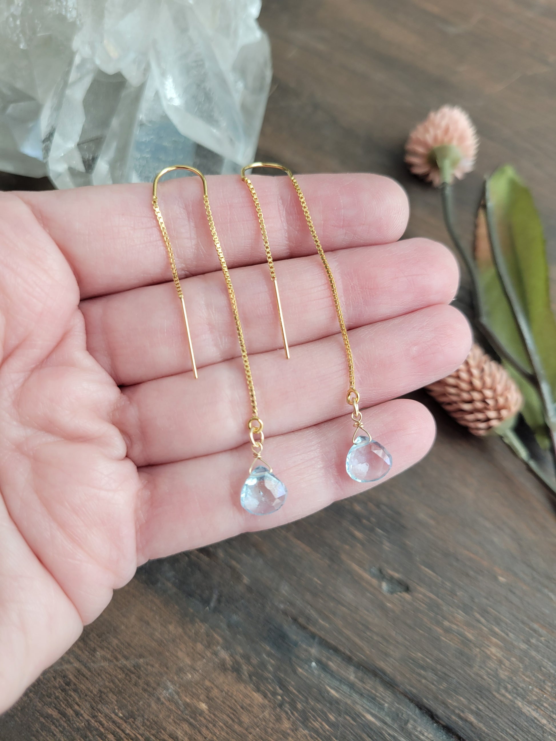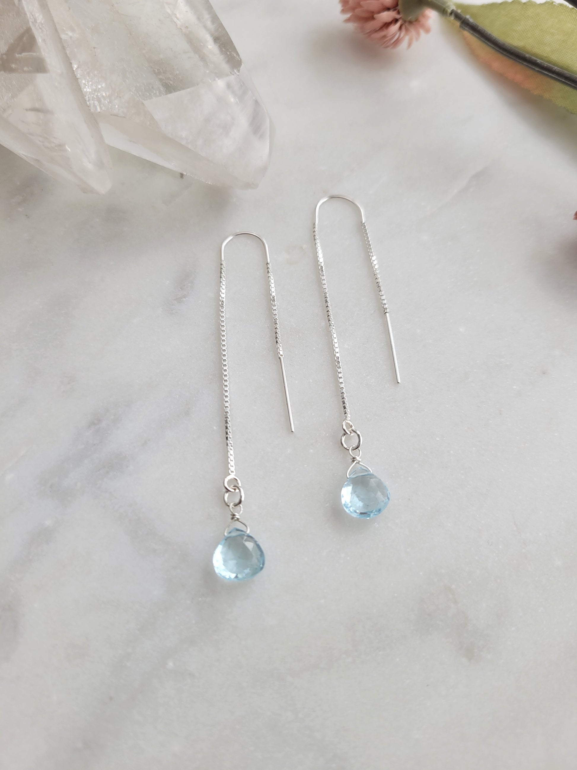 Beautiful Sky Blue Topaz threader earrings in your choice of Sterling Silver or 14K Gold Filled.