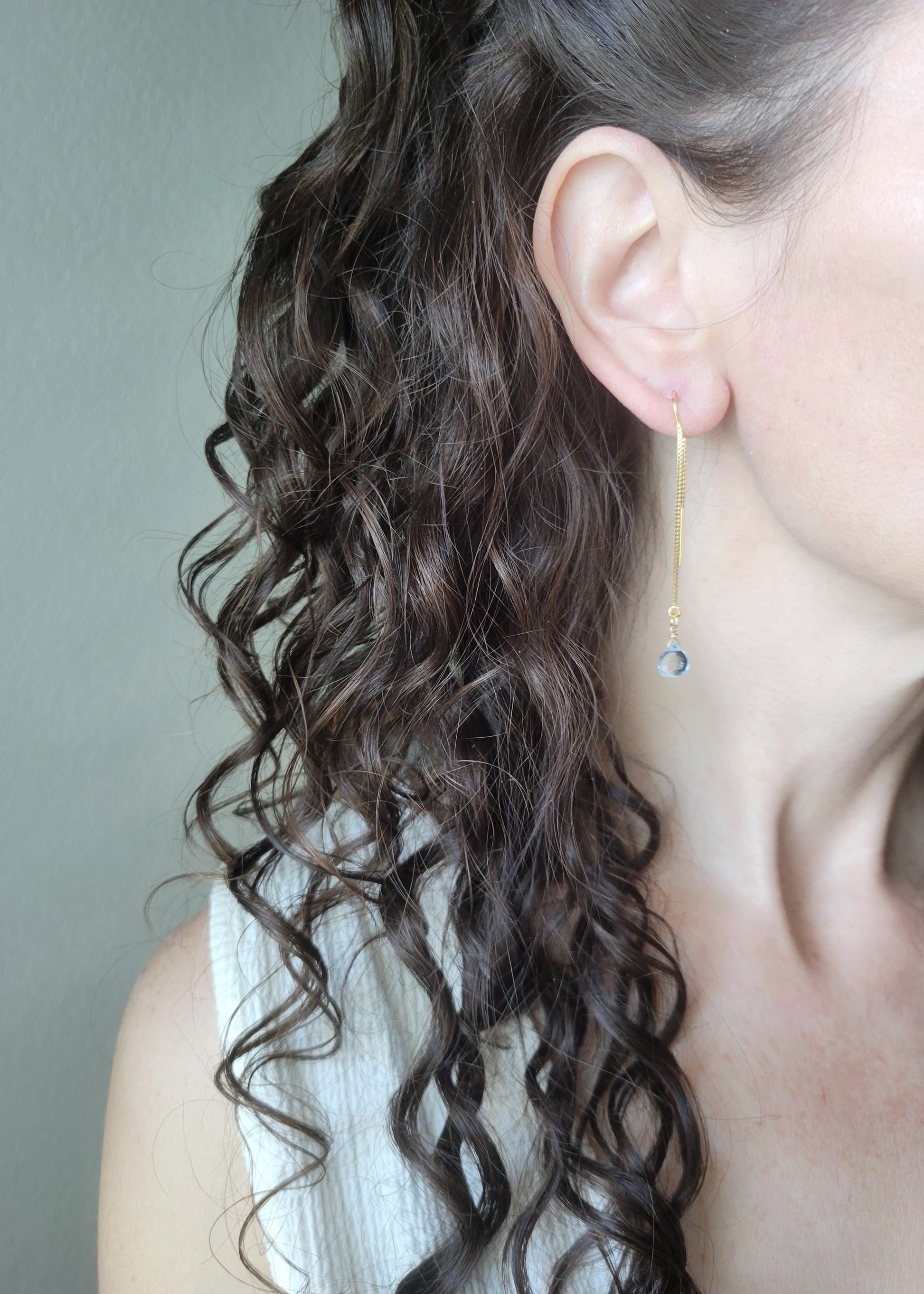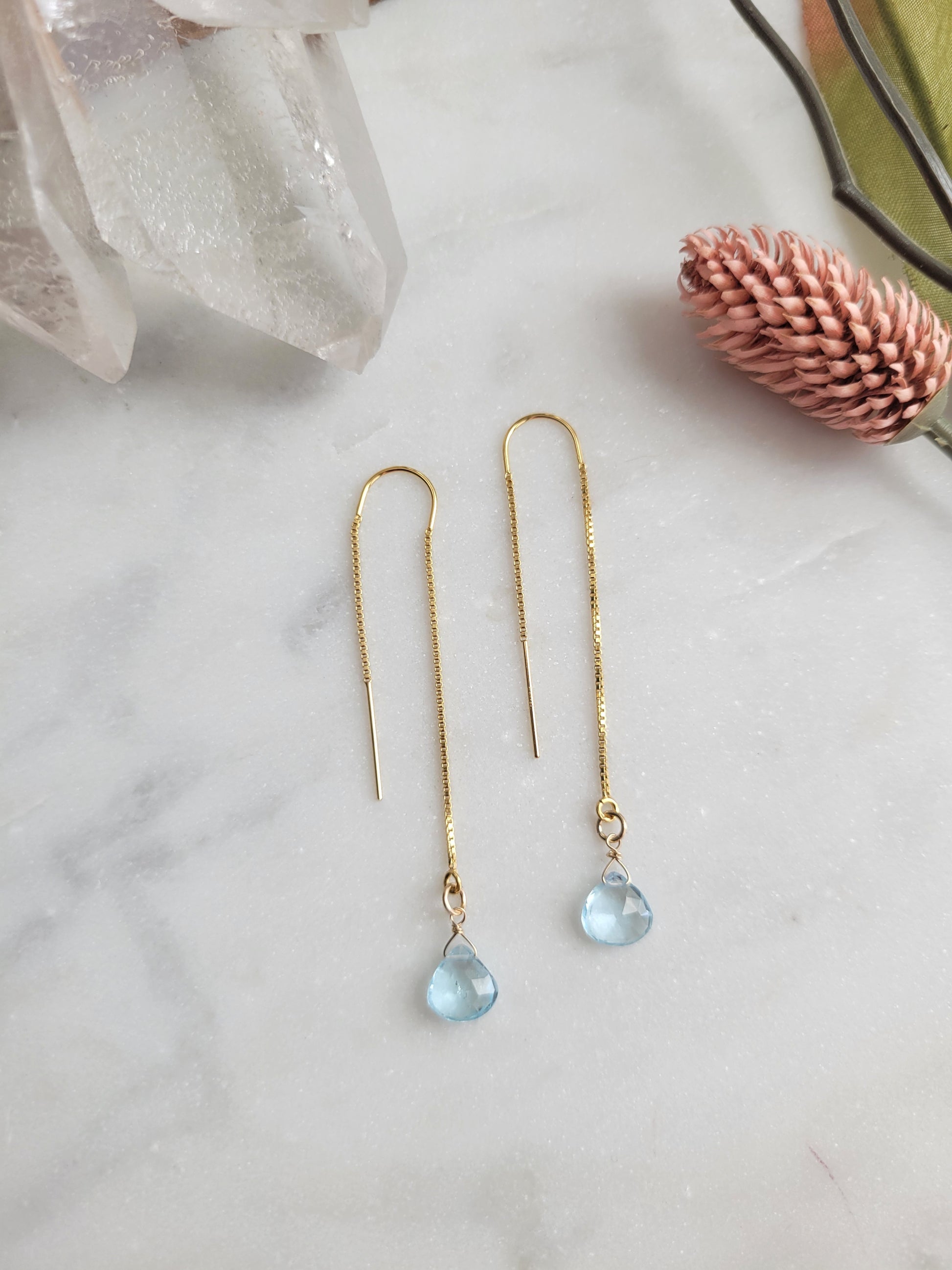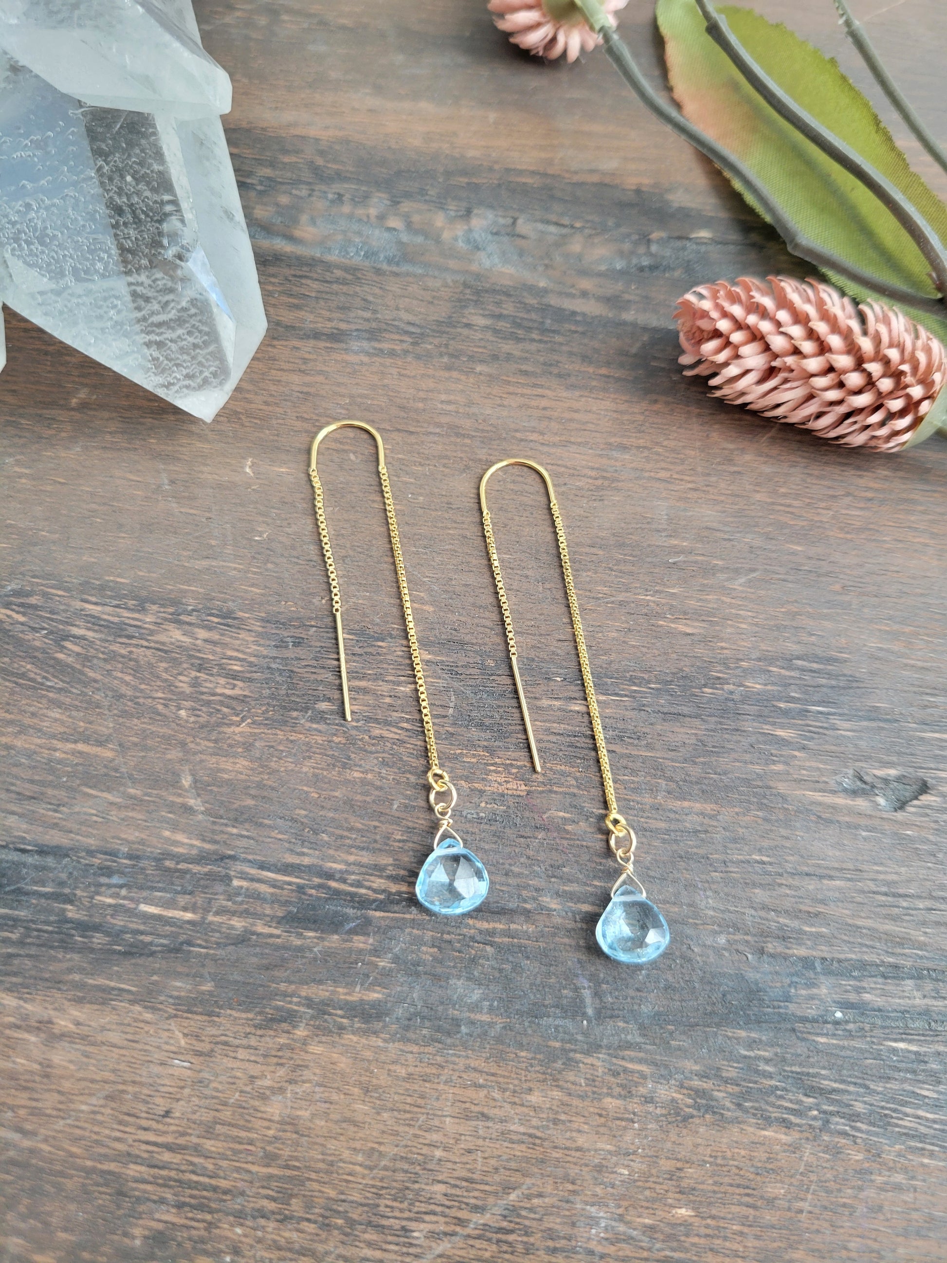 Beautiful Sky Blue Topaz threader earrings in your choice of Sterling Silver or 14K Gold Filled.
