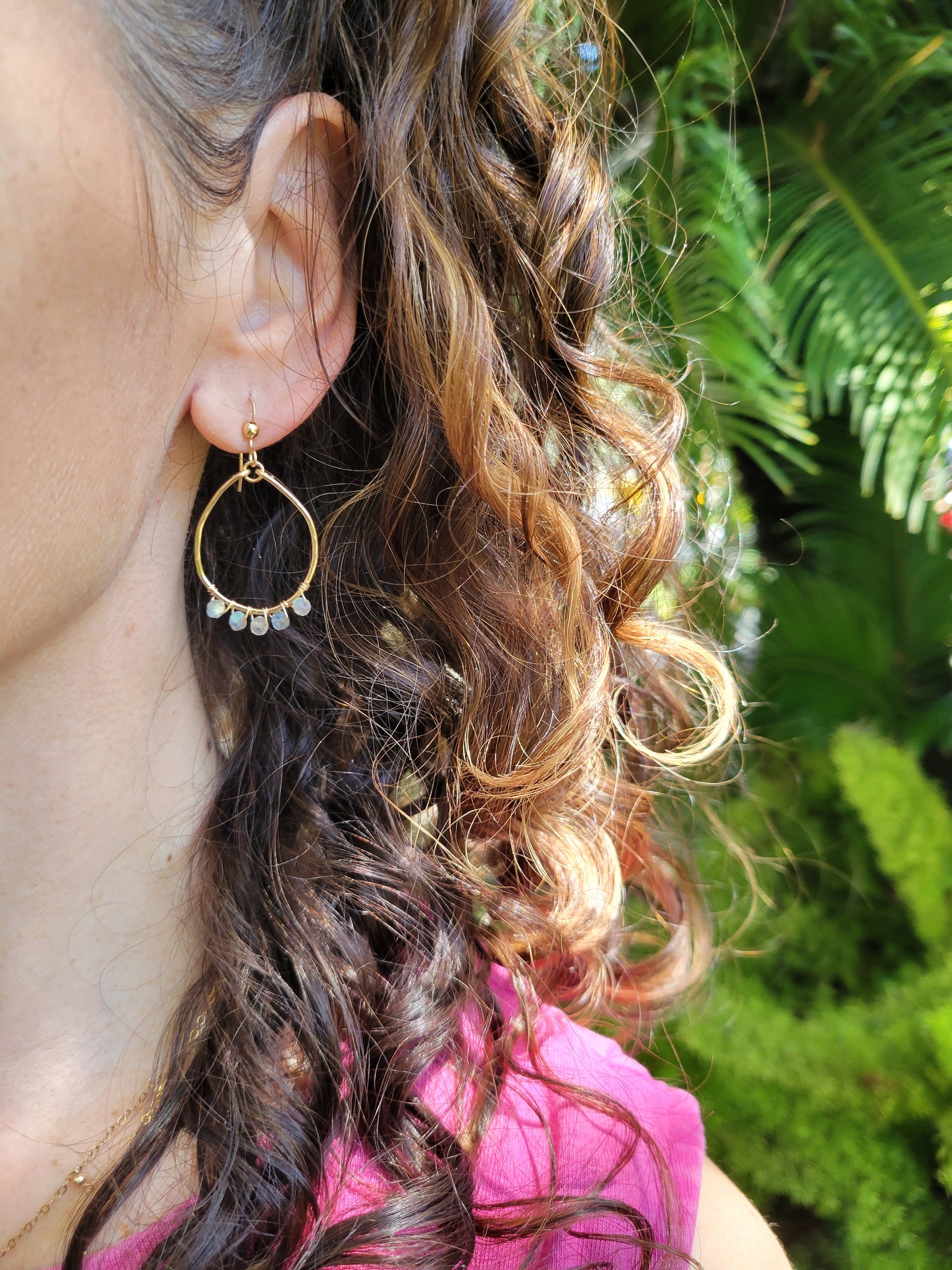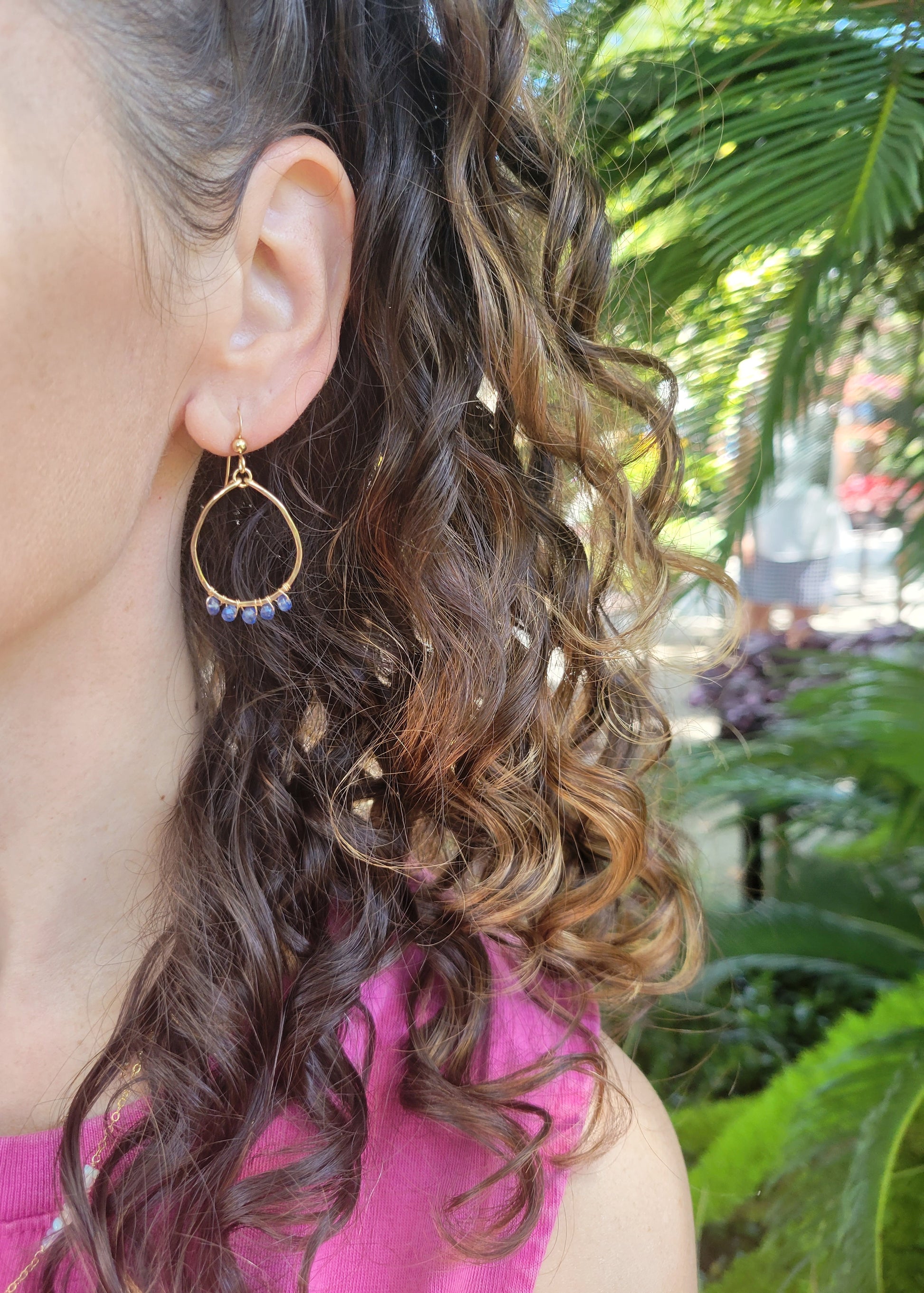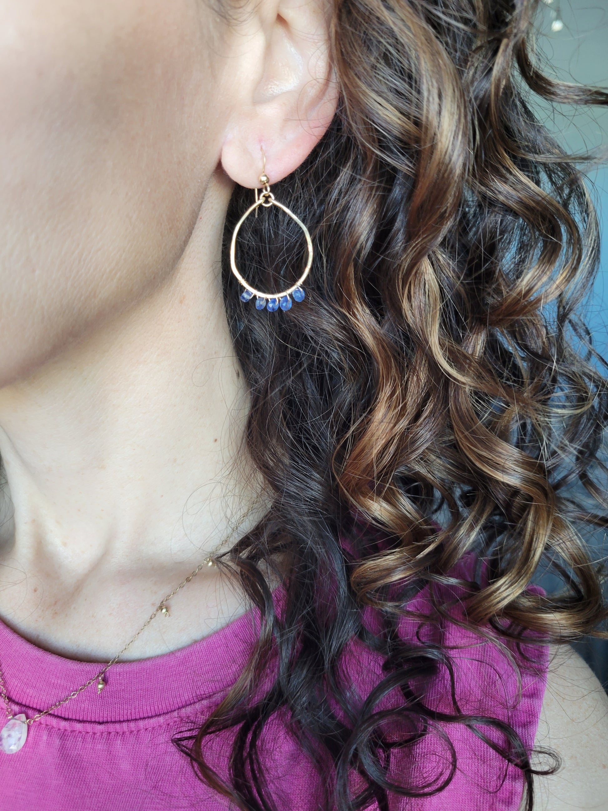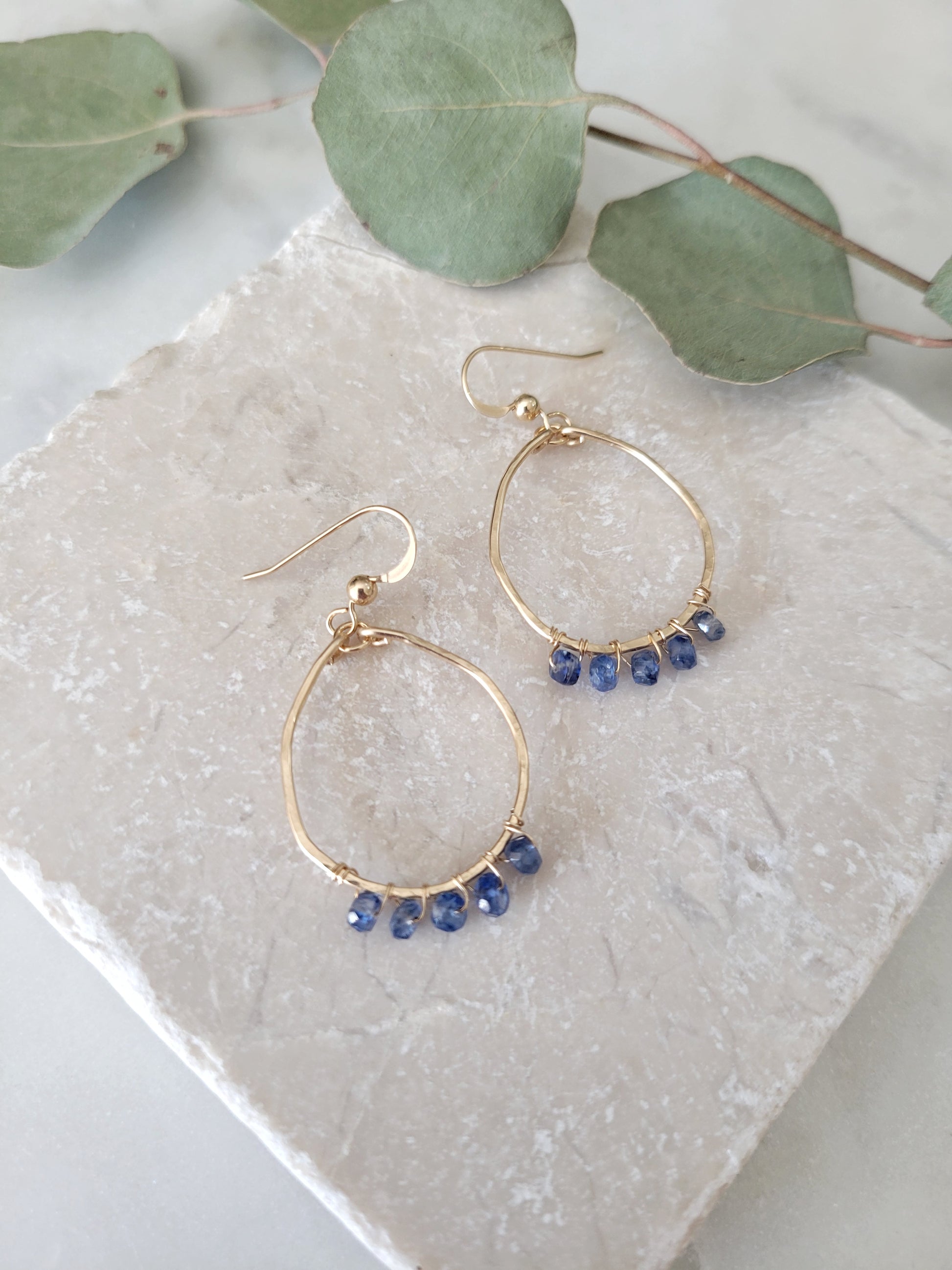Dainty and sweet gemstone hoop earrings in your choice of Kyanite Gemstone (Blue) or Labradorite Gemstone (Gray with a light flash of color) These are super light and easy to wear! The blue of the Kyanite is such a gorgeous blue! Both gemstones are great for the upcoming fall season!