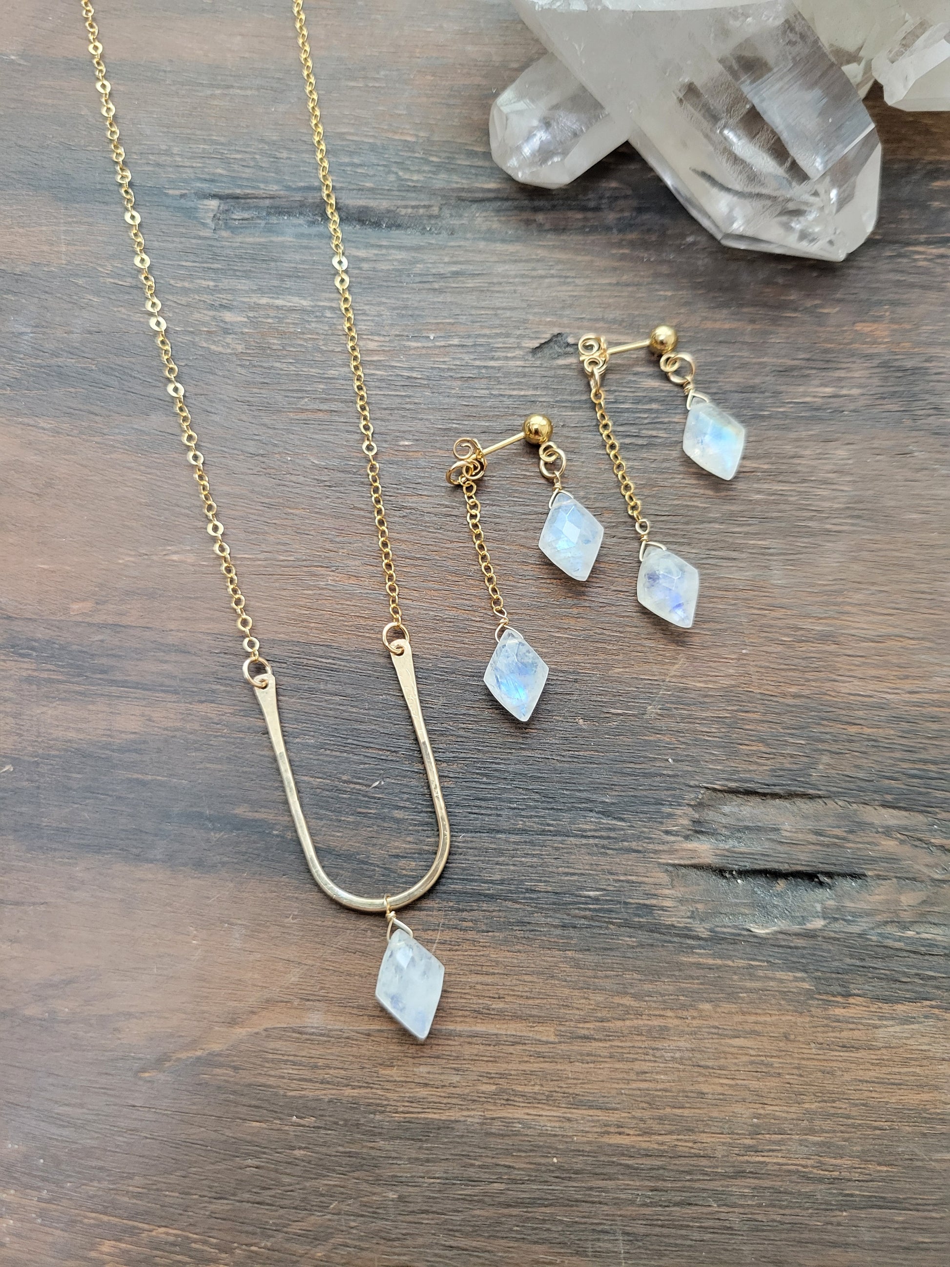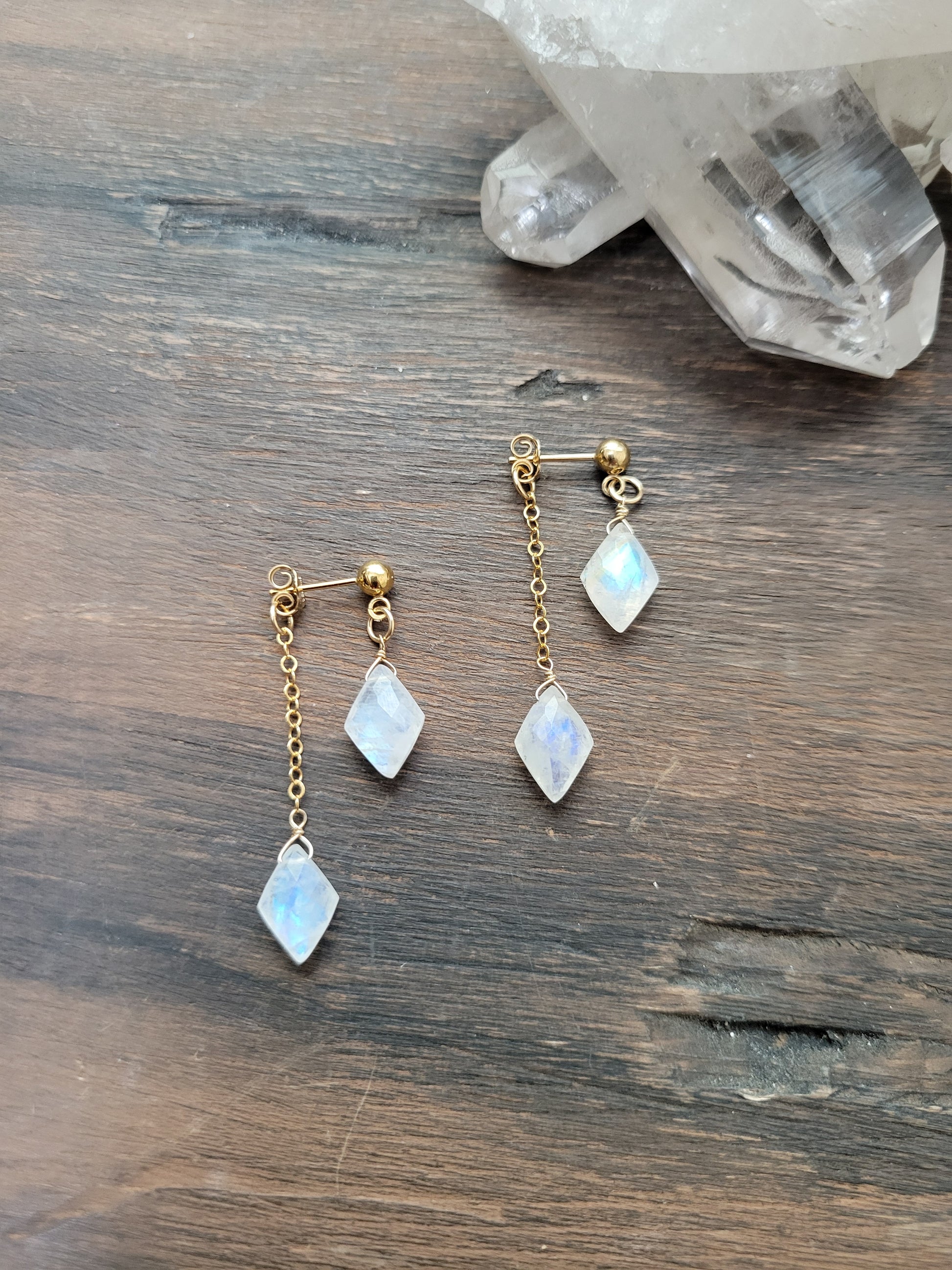 Gorgeous Rainbow Moonstone Dangle Stud Earrings! I named these Starla Earrings because as soon as I put them on I started singing Lucky Star by Madonna! Don't they remind you of beautiful beaming stars?! You can dress these up or down and are beautiful all year round!